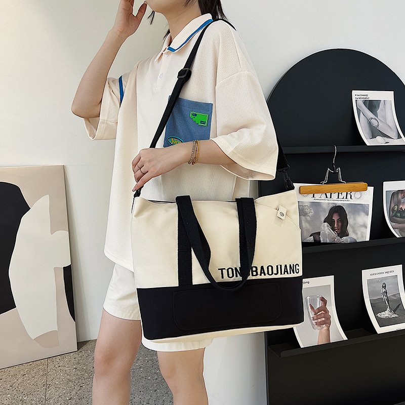 캔버스 가방 여성 가방 새로운 패션 트렌디 한 토트 백 캐주얼 간단한 대용량 어깨 크로스 바디 백스토어 가기