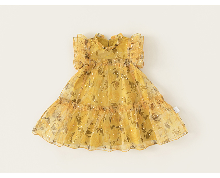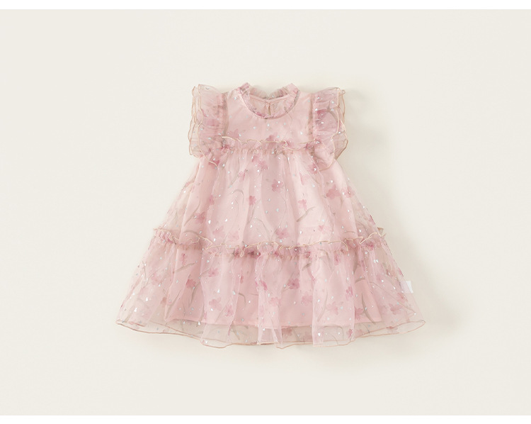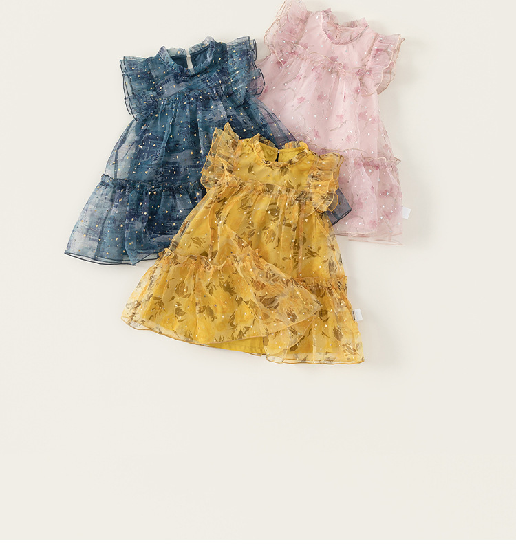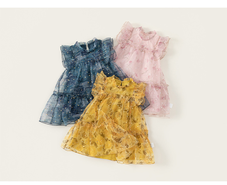 Youbao 아동 의류 여름 메쉬 스커트 얇은 요정 스커트 작은 플라잉 슬리브 공주 스커트 소녀 드레스 달콤한 스커트스토어 가기