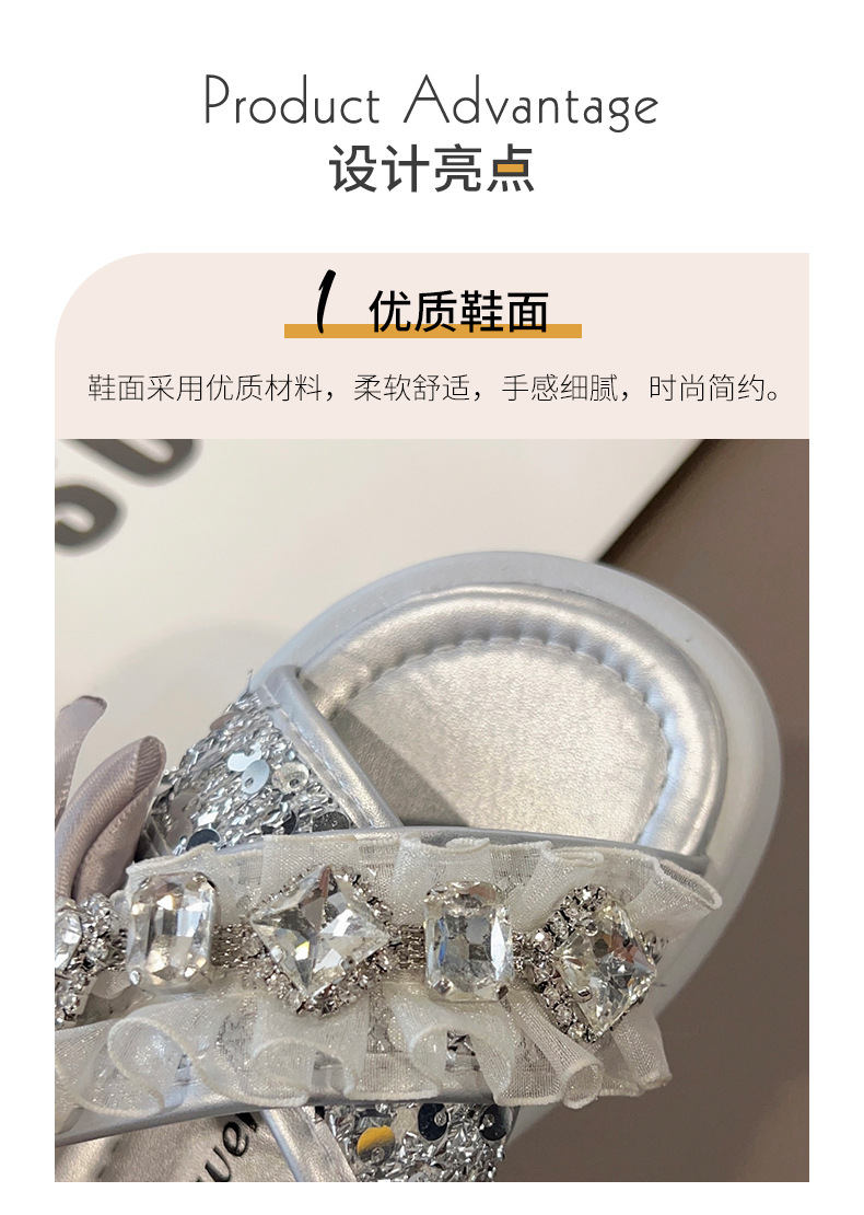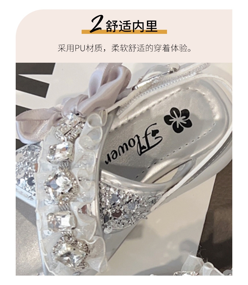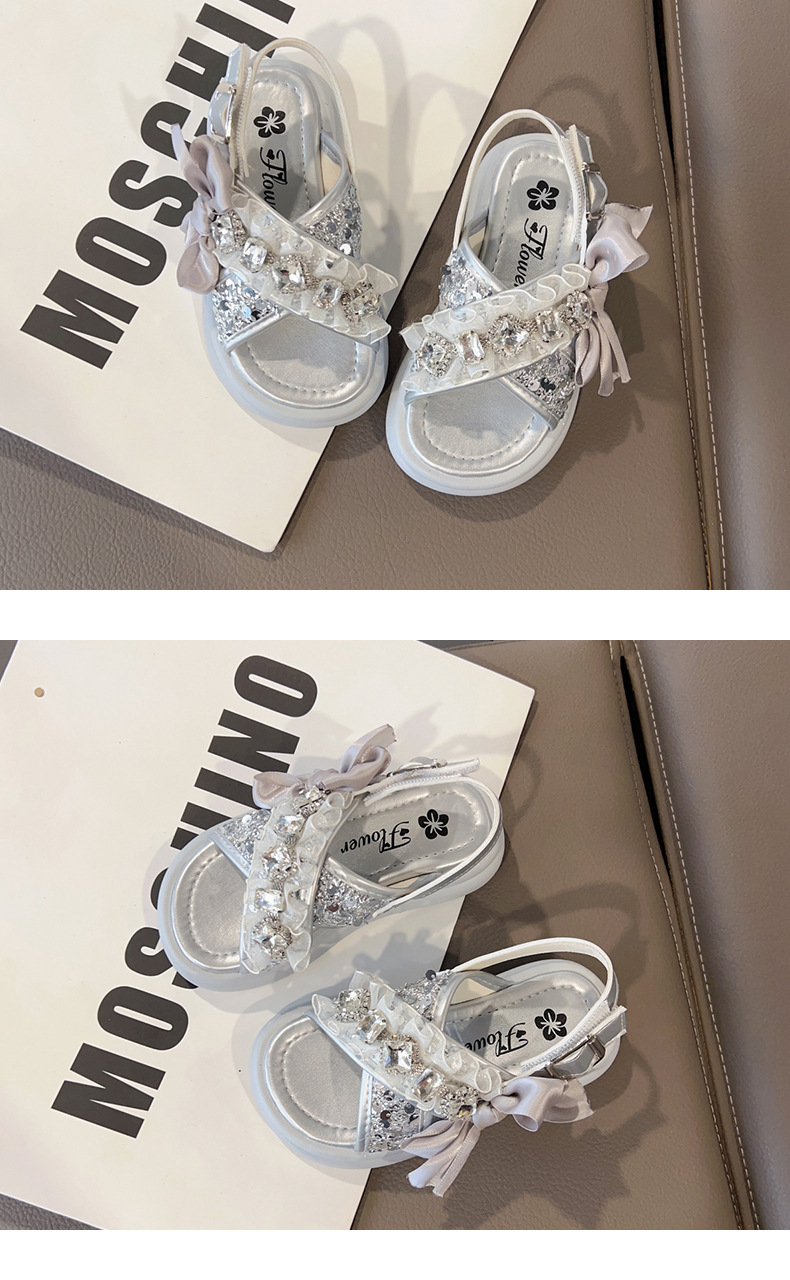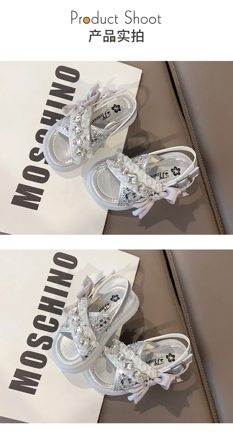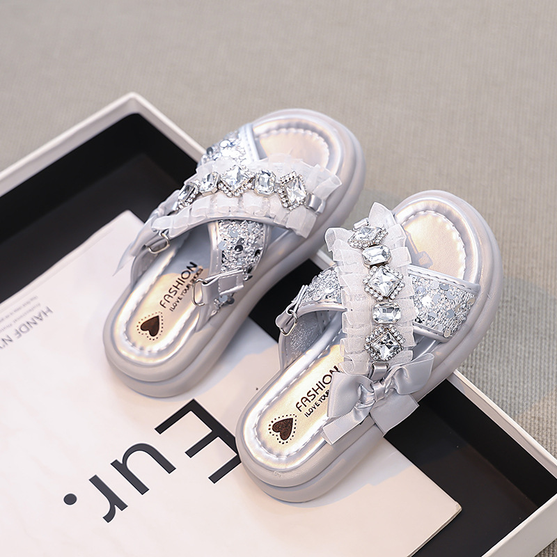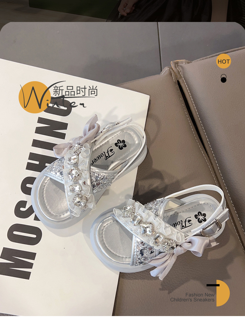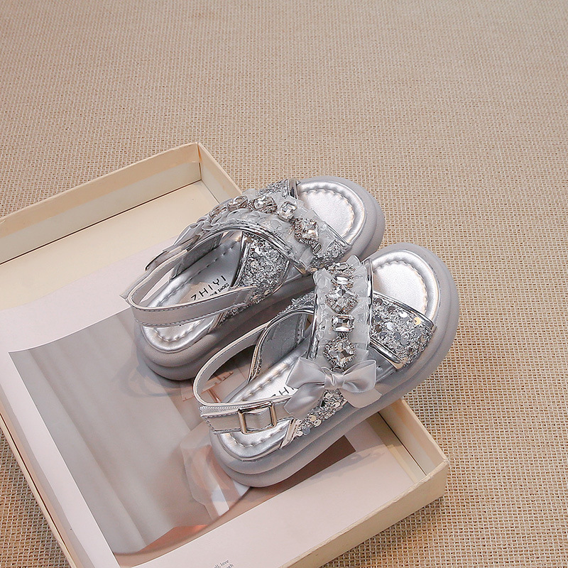 실버 반짝이는 세련된 공주 신발 소녀 샌들 2025 새로운 여름 어린이 소녀 여름 크리스탈 다이아몬드 신발스토어 가기