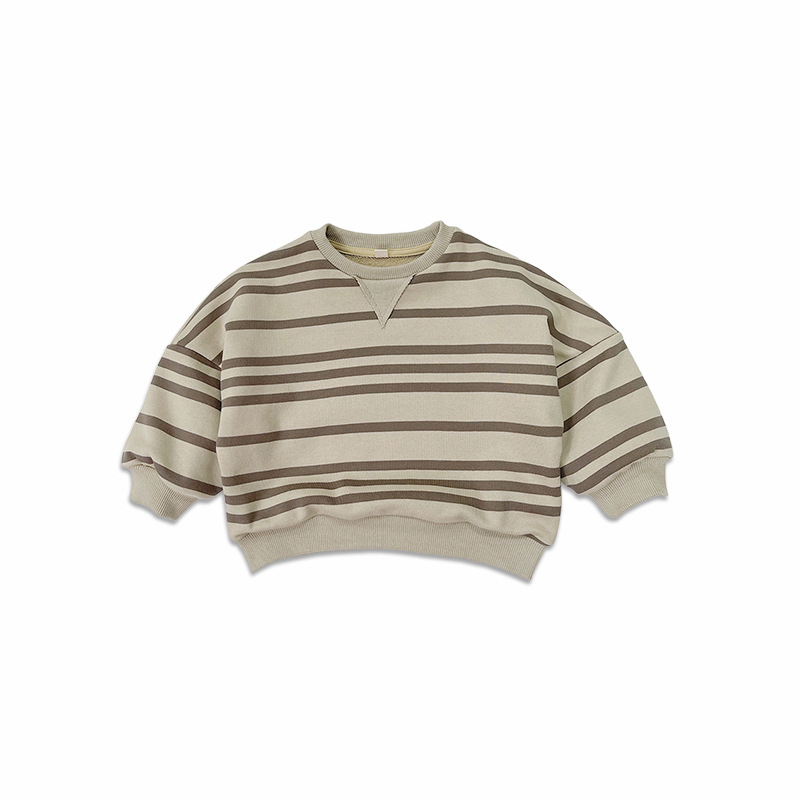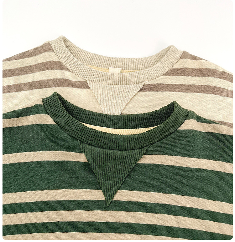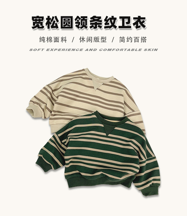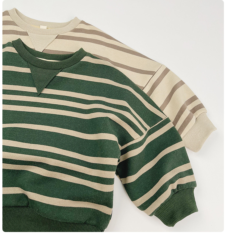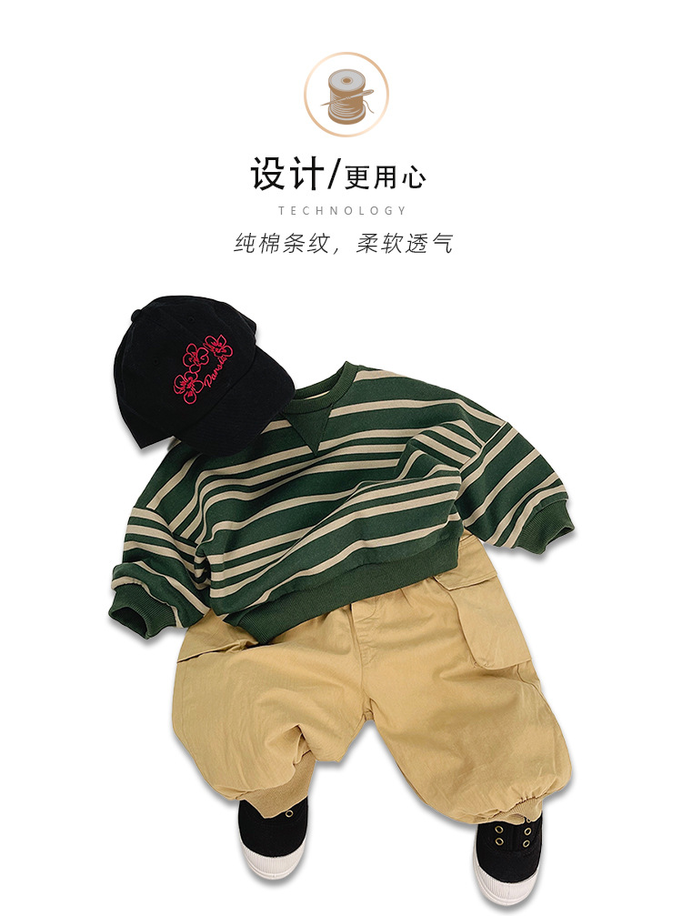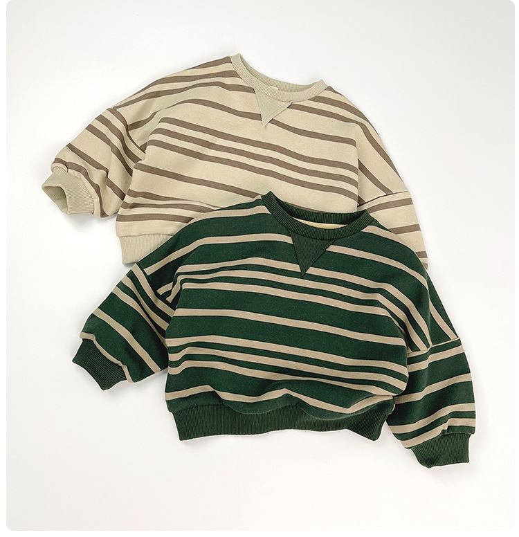우유색 스트라이프~ 봄철 아동용 래글런 코튼 스웨트셔츠 남녀공용 한국 스타일 캐주얼 루즈핏 유아 신상품스토어 가기