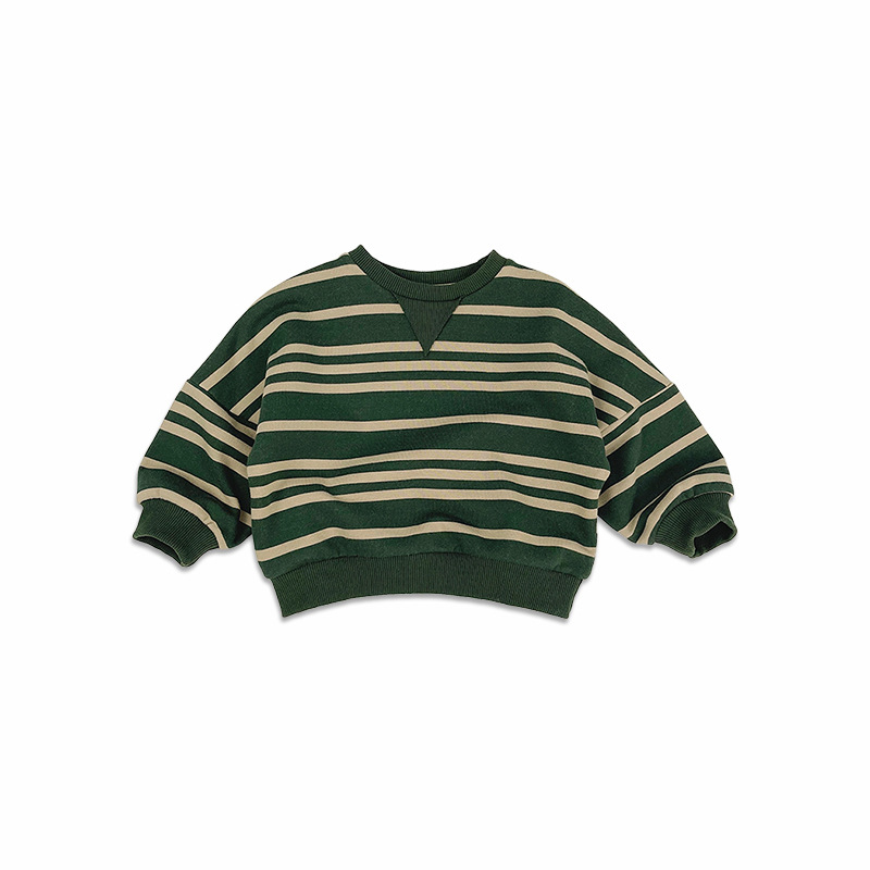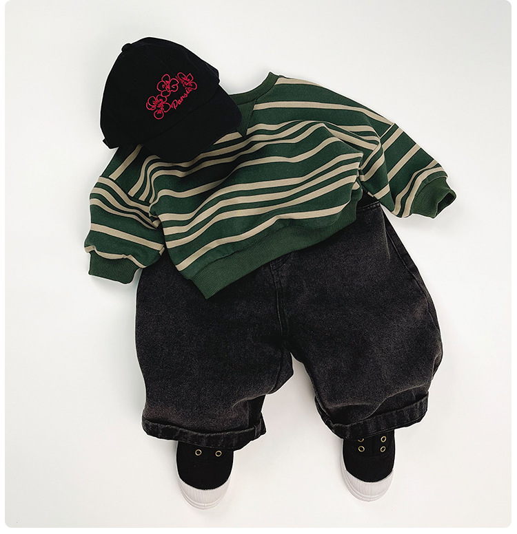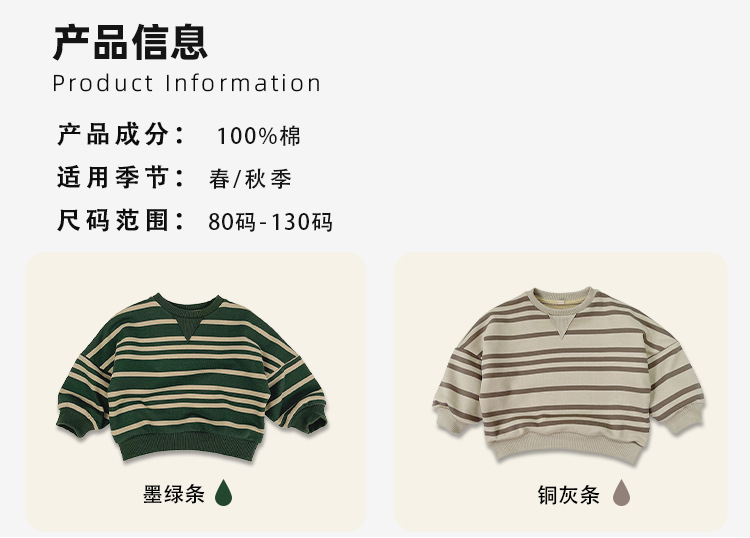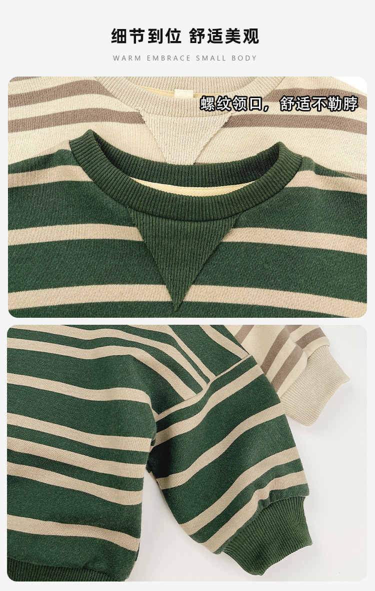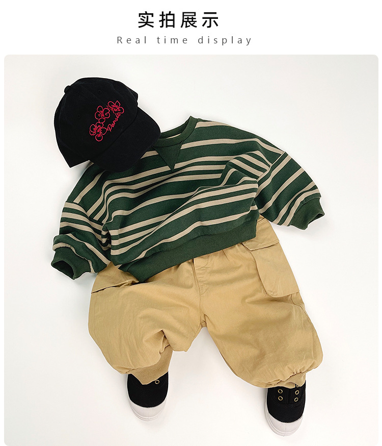 우유색 스트라이프~ 봄철 아동용 래글런 코튼 스웨트셔츠 남녀공용 한국 스타일 캐주얼 루즈핏 유아 신상품스토어 가기