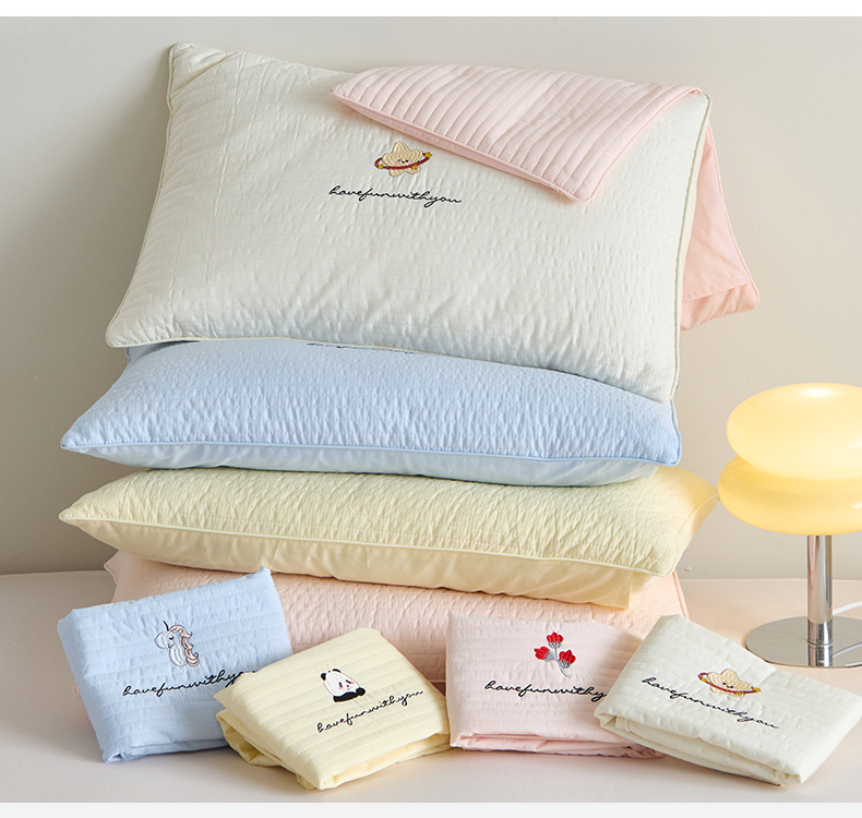 클래스 A 베개 케이스 세척 면 퀼트 싱글 베개 케이스 원사 염색 면화 어린이 성인 베개 케이스 학생