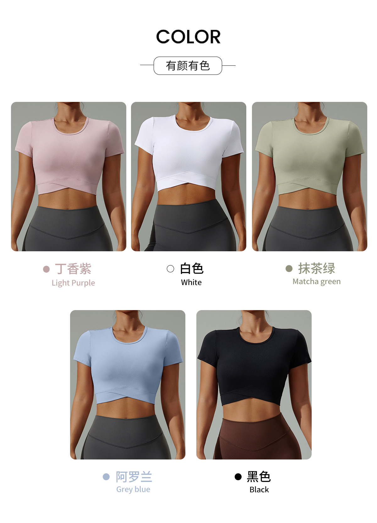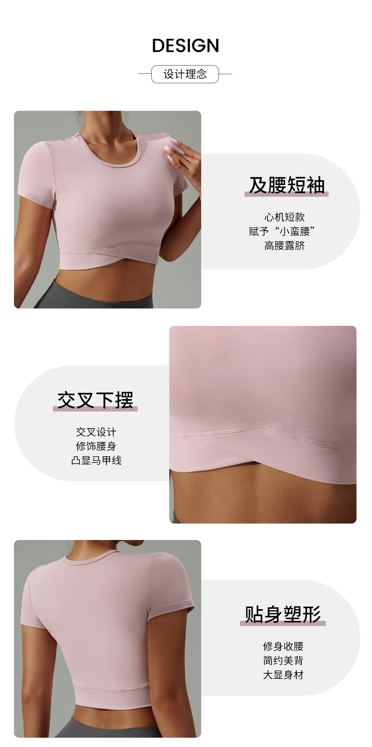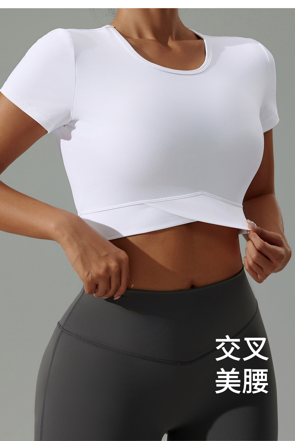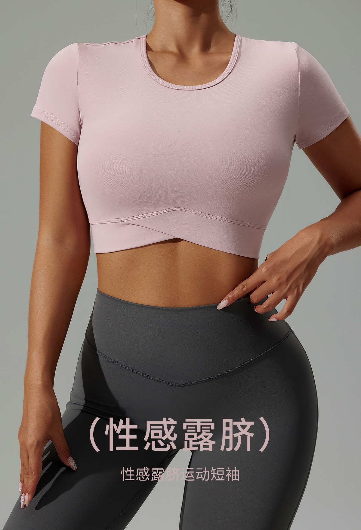국경 새 요가 의류 티셔츠 여성 여름 섹시한 배꼽 크루 넥 피트니스 의류 반팔 고탄성 통기성 스포츠웨어