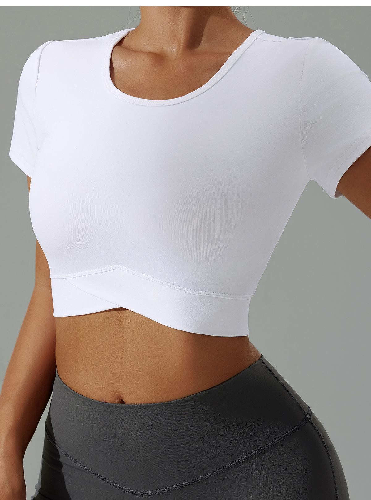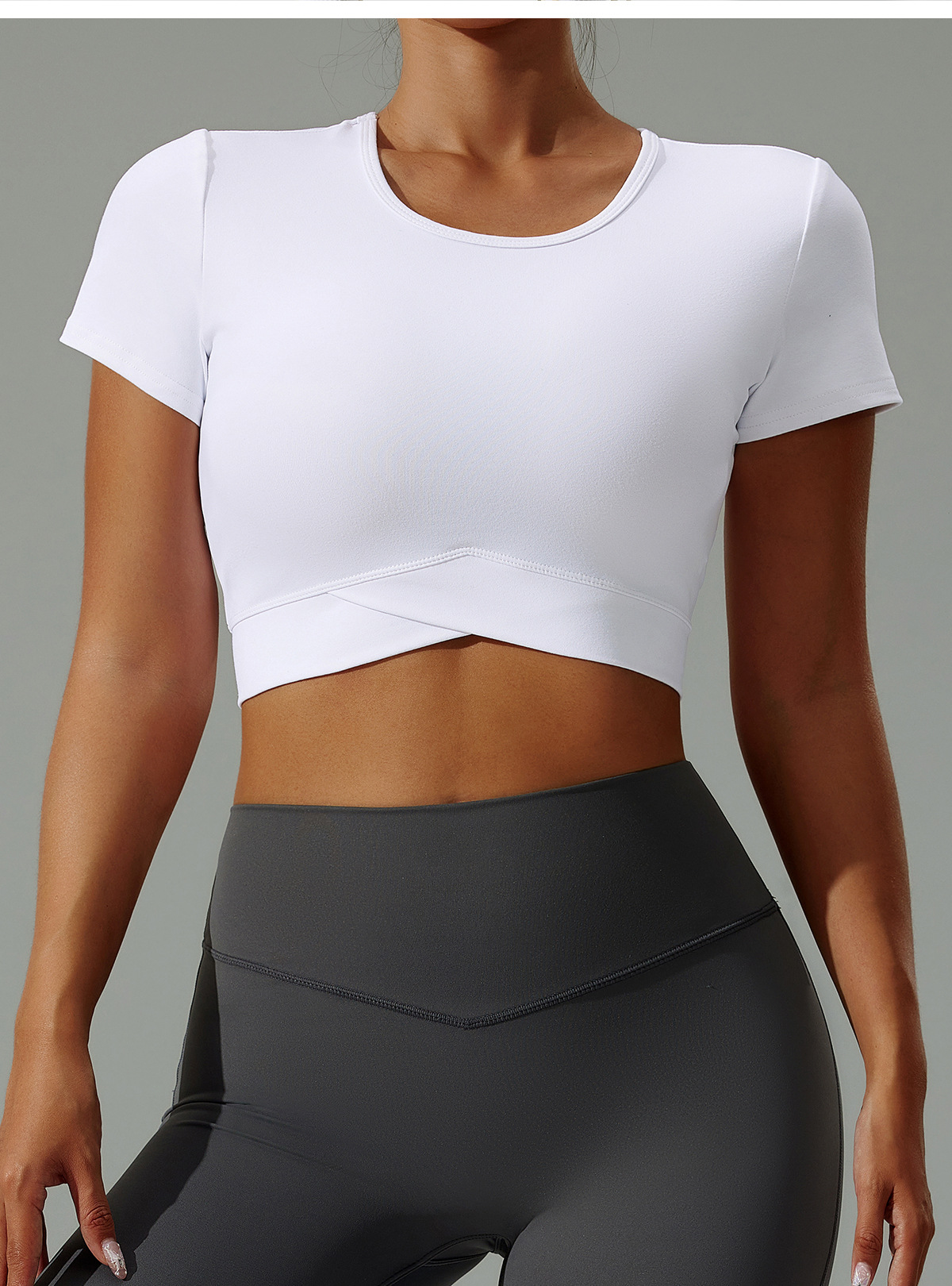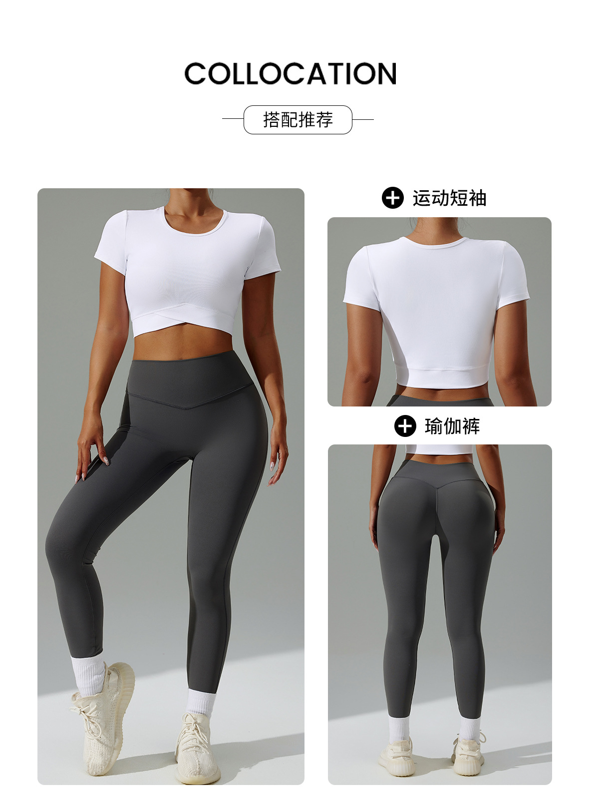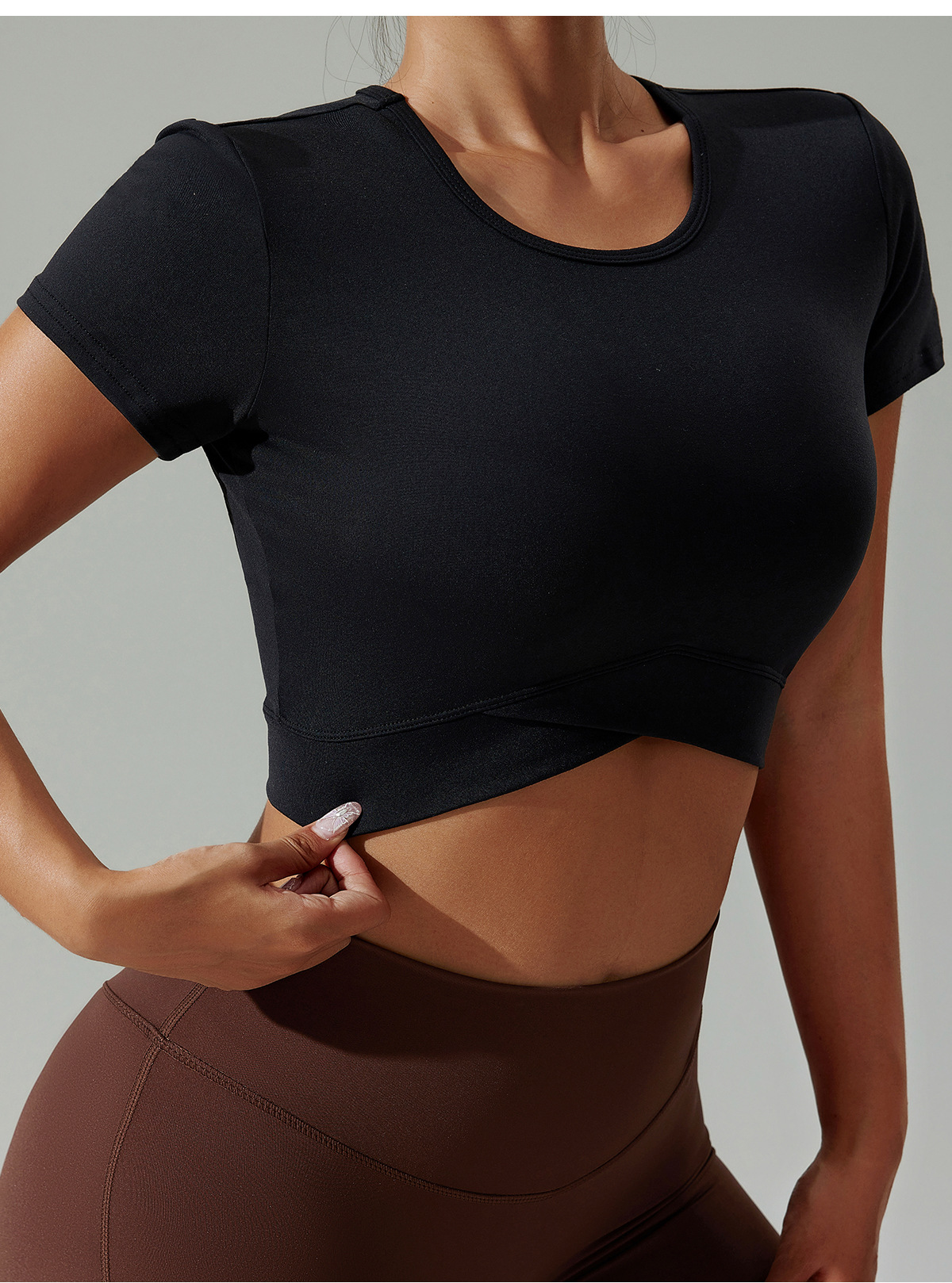 국경 새 요가 의류 티셔츠 여성 여름 섹시한 배꼽 크루 넥 피트니스 의류 반팔 고탄성 통기성 스포츠웨어