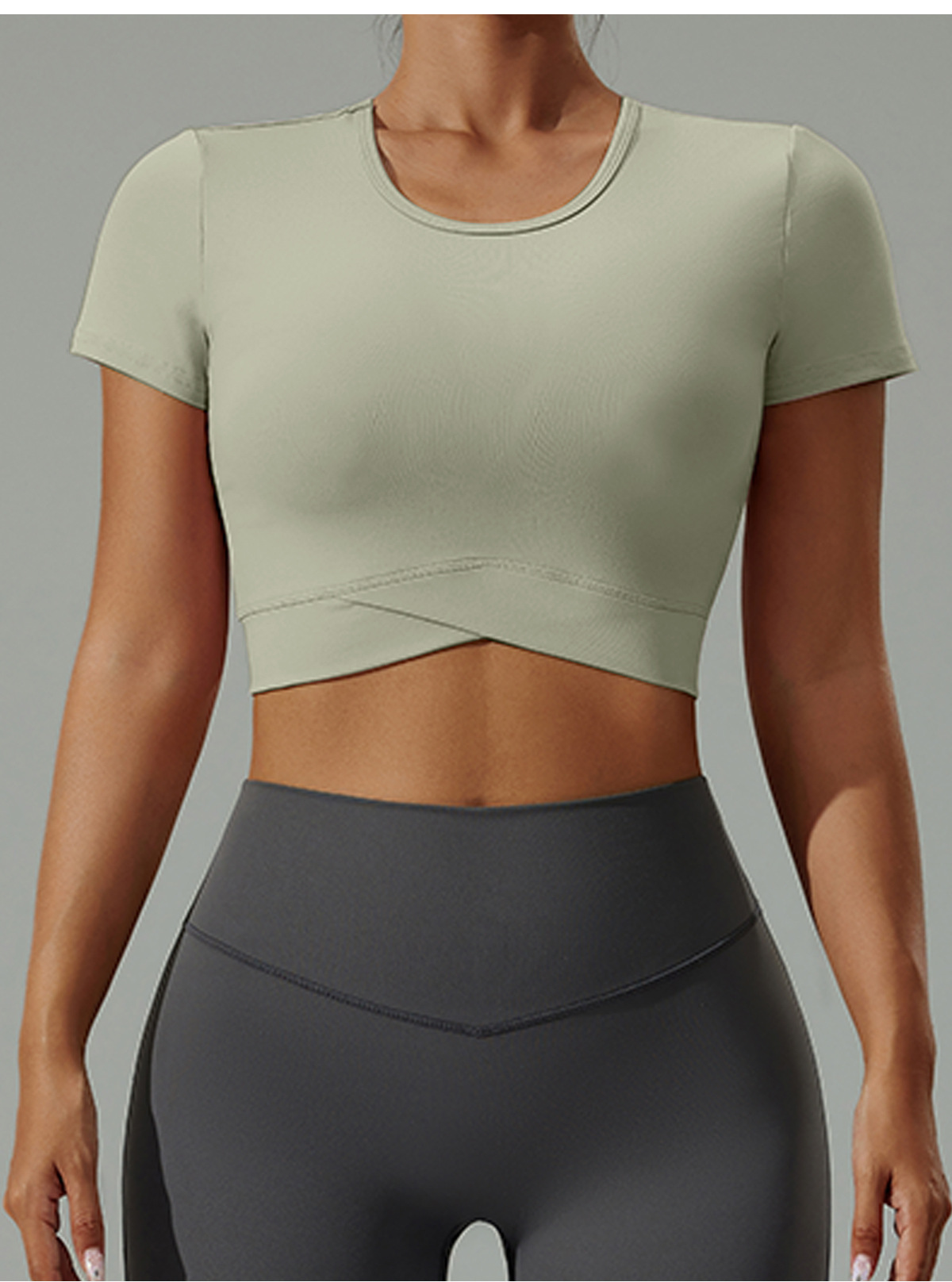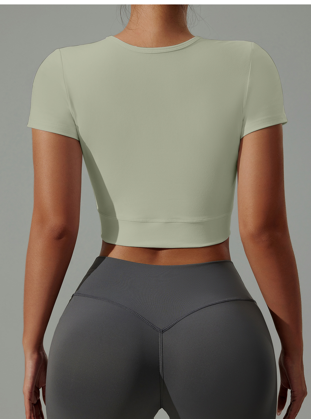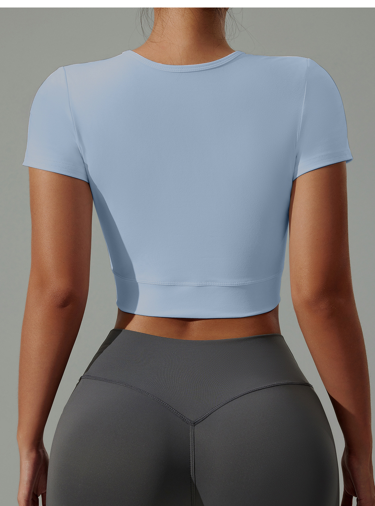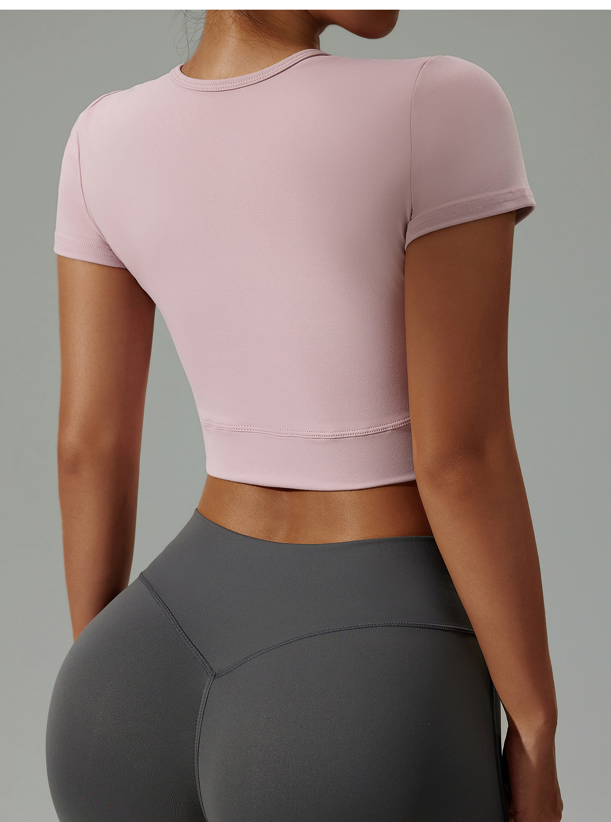 국경 새 요가 의류 티셔츠 여성 여름 섹시한 배꼽 크루 넥 피트니스 의류 반팔 고탄성 통기성 스포츠웨어