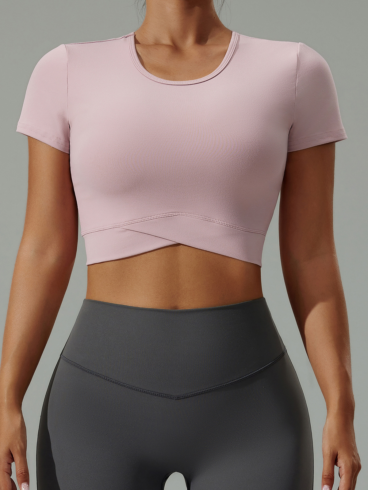 국경 새 요가 의류 티셔츠 여성 여름 섹시한 배꼽 크루 넥 피트니스 의류 반팔 고탄성 통기성 스포츠웨어스토어 가기