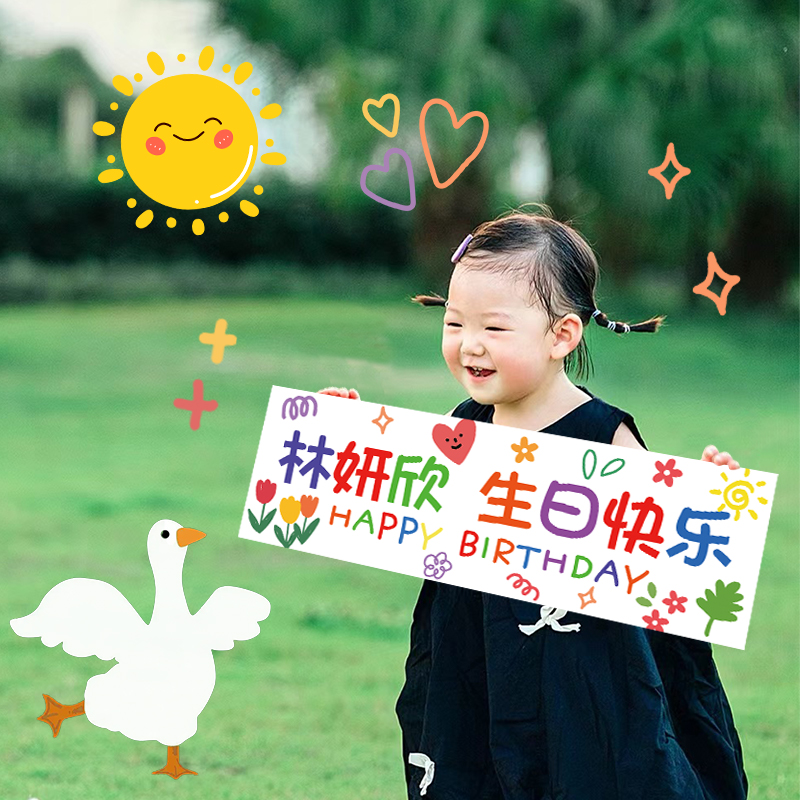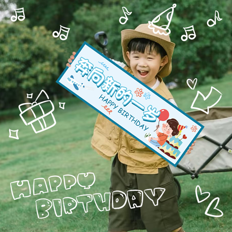 • 맞춤형 이름 [생일 축하하는 작은 아기] 15*45cm