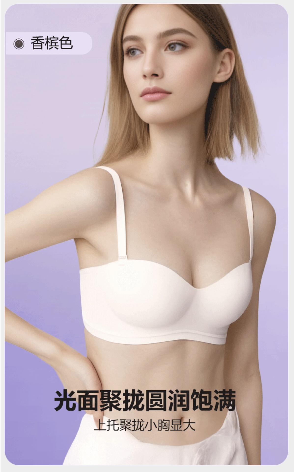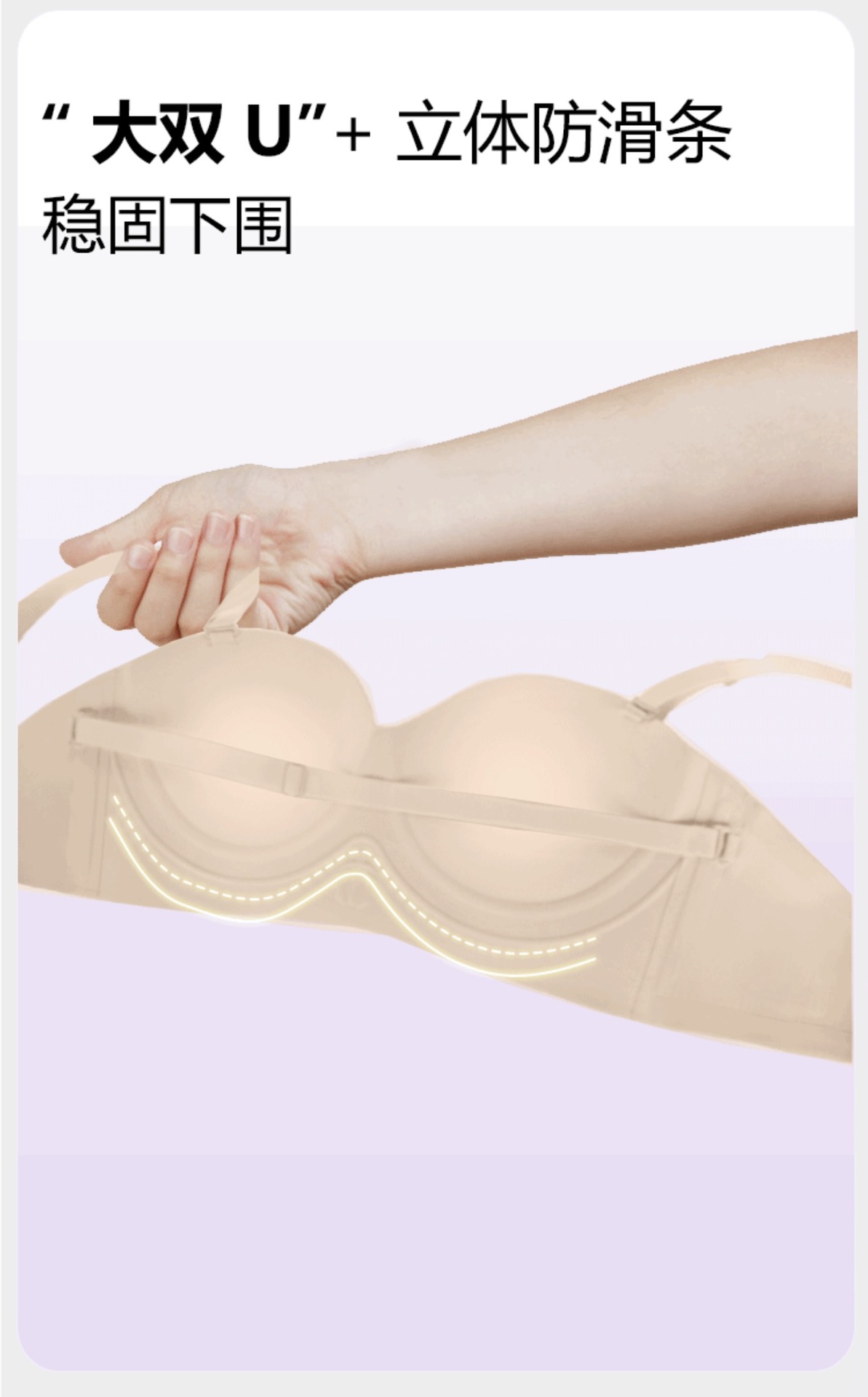 여성용 가변 C 라운드 컵 외장 확장 속옷 푸시 업 미끄럼 보이지 않는 상단 어깨 스트랩 튜브 랩 유방 소형 유방 브래지어