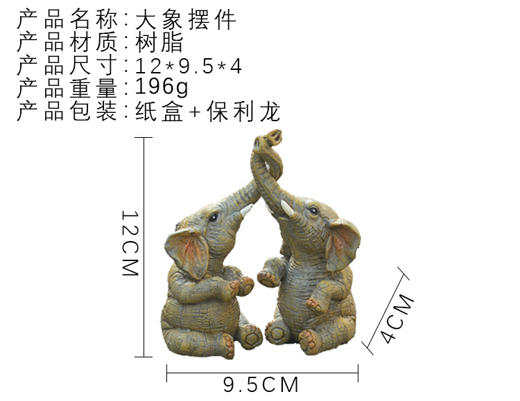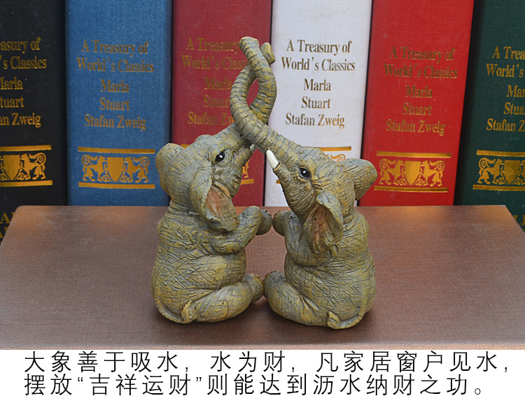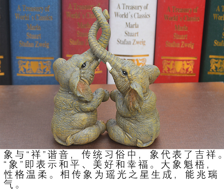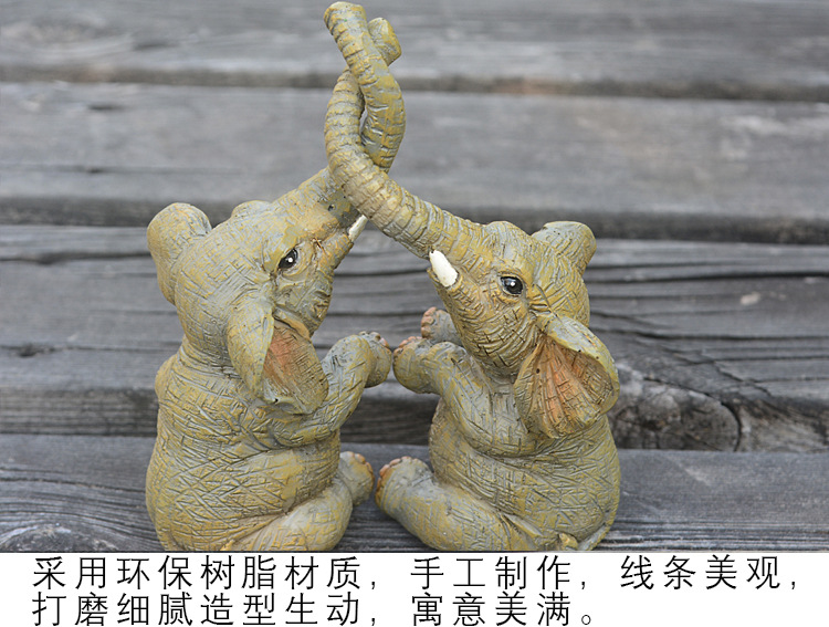 국경 간 창조적 인 새로운 쌍둥이 코끼리 홈 장식 장식품 거실 장식 수지 공예 제조 업체 도매