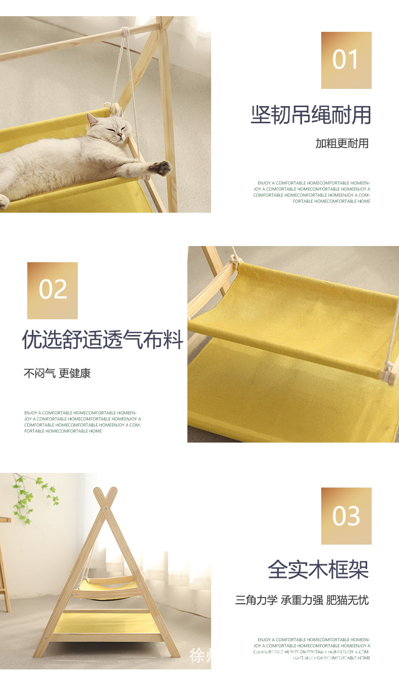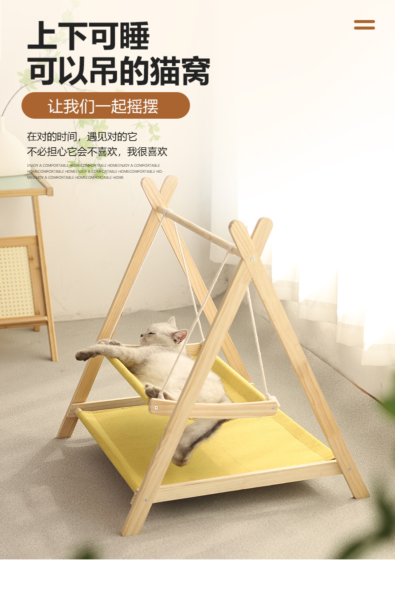 새로운 고양이 해먹 삼각형 더블 슬리핑 침대 애완 동물 스윙 사계절 유니버설 분리 가능하고 빨 수있는 나무 고양이 둥지