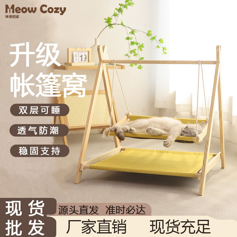 새로운 고양이 해먹 삼각형 더블 슬리핑 침대 애완 동물 스윙 사계절 유니버설 분리 가능하고 빨 수있는 나무 고양이 둥지스토어 가기