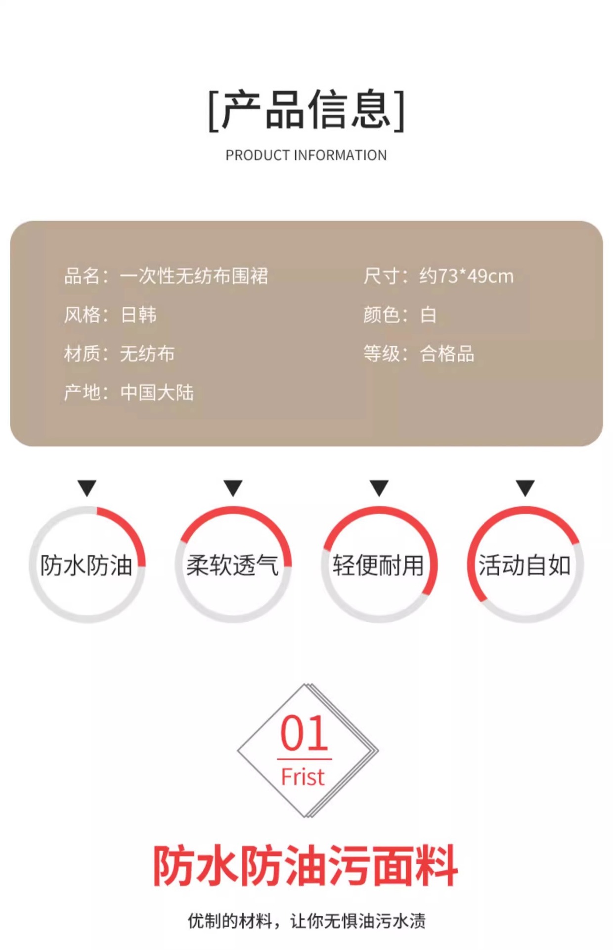 일회용 부직포 앞치마 가정용 주방 케이터링 어린이 턱받이 방수 및 내유성 식생활 성인 턱받이