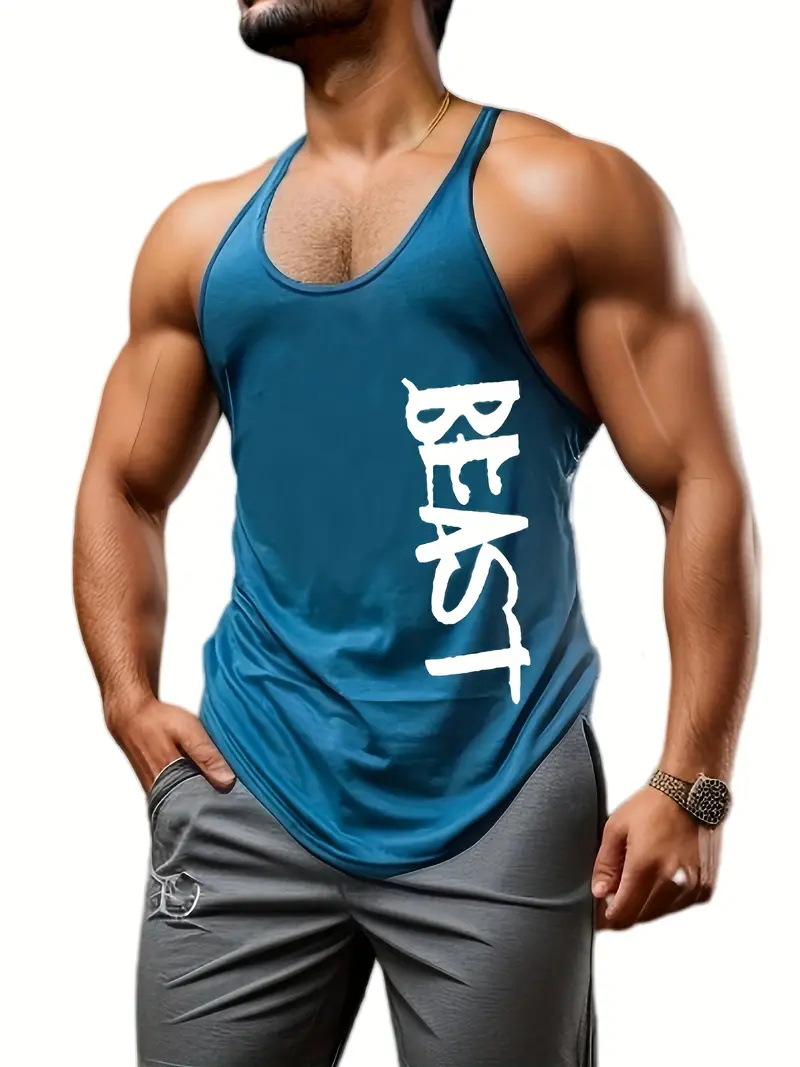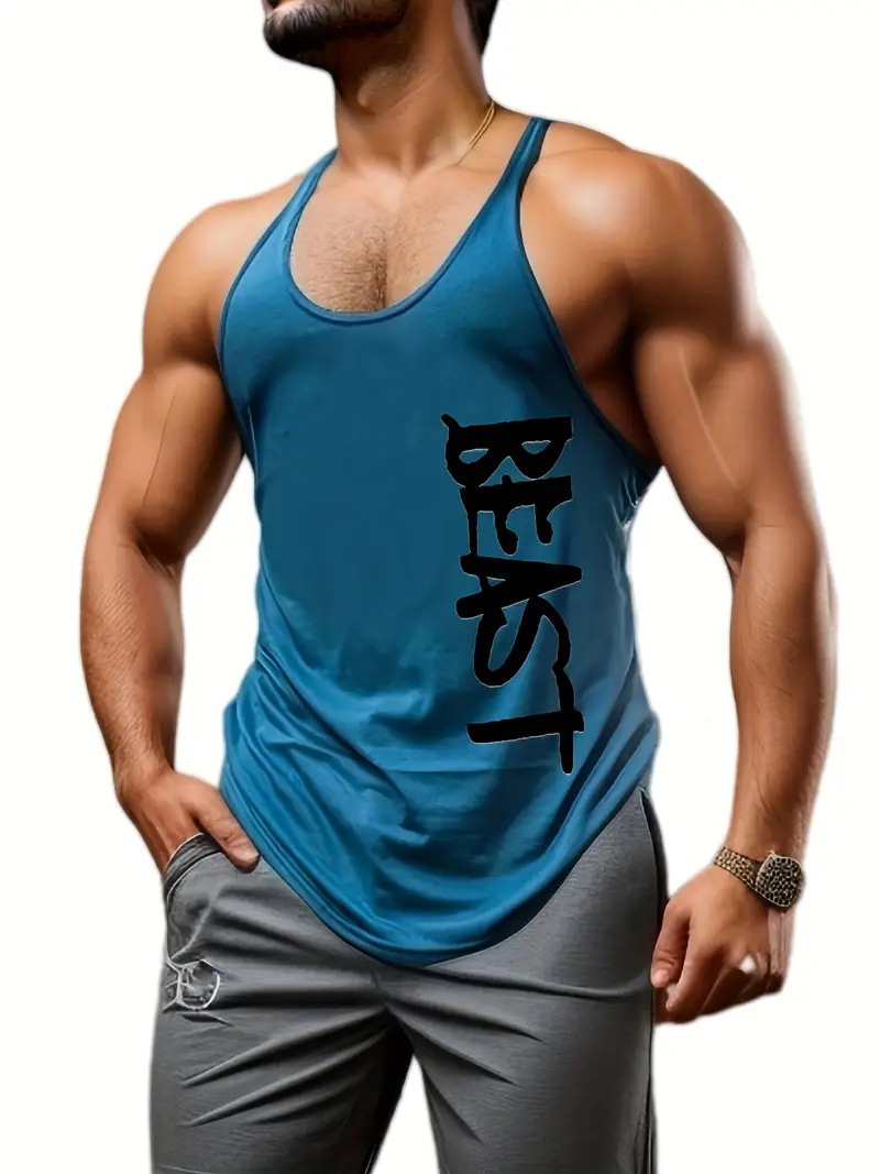 2024 인쇄 된 소년 민소매 티셔츠 여름 유행 단색 슈퍼 좁은 어깨 캐주얼 올 매치 느슨한 조끼 WG3스토어 가기
