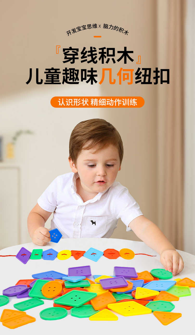 고급 모터 트레이닝 장난감 유치원 조기 교육 퍼즐 3 년 된 빌딩 블록 기하학적 버튼 스레딩 보드 스트링 퍼즐스토어 가기