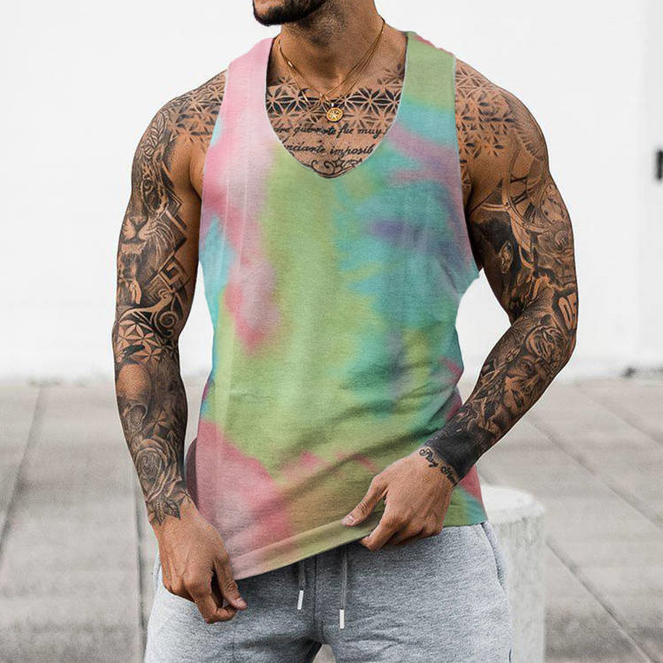 남자 스포츠 피트니스 조끼 훈련 유행 민소매 티셔츠 유럽과 미국의 V 넥 솔리드 컬러 코튼 I 자형 조끼 WN12스토어 가기