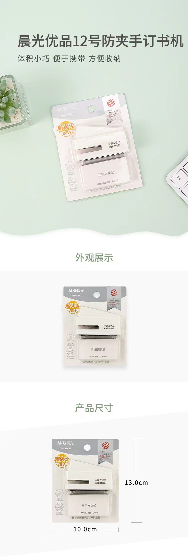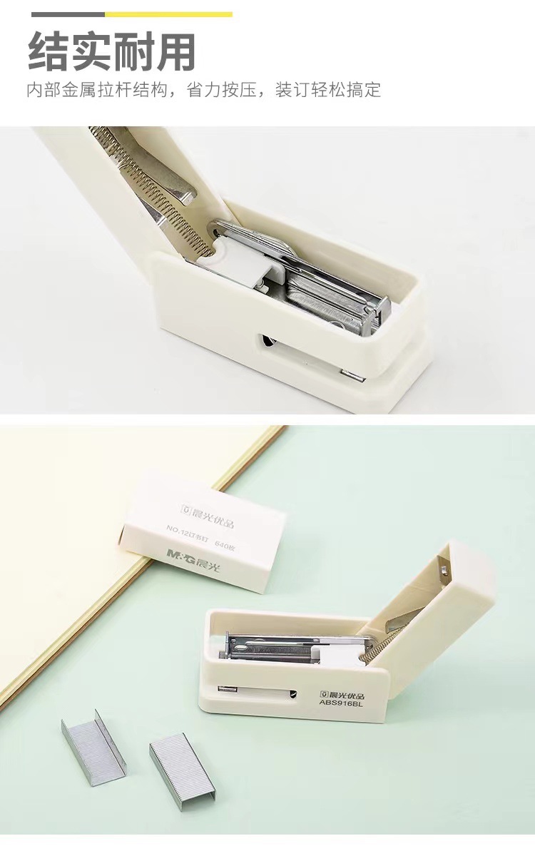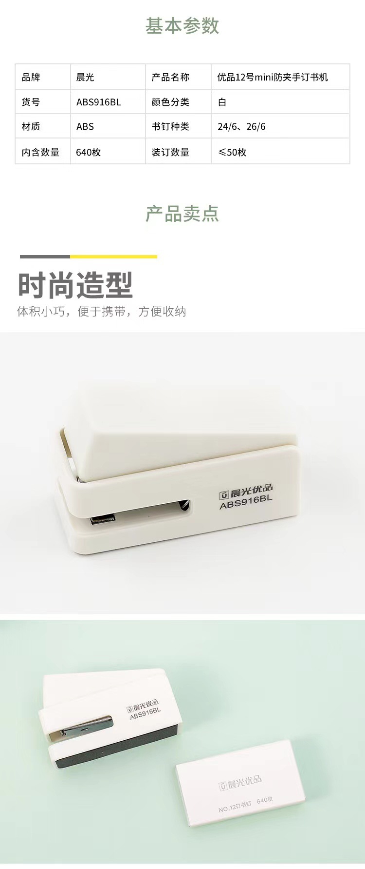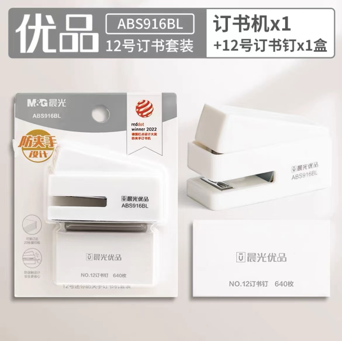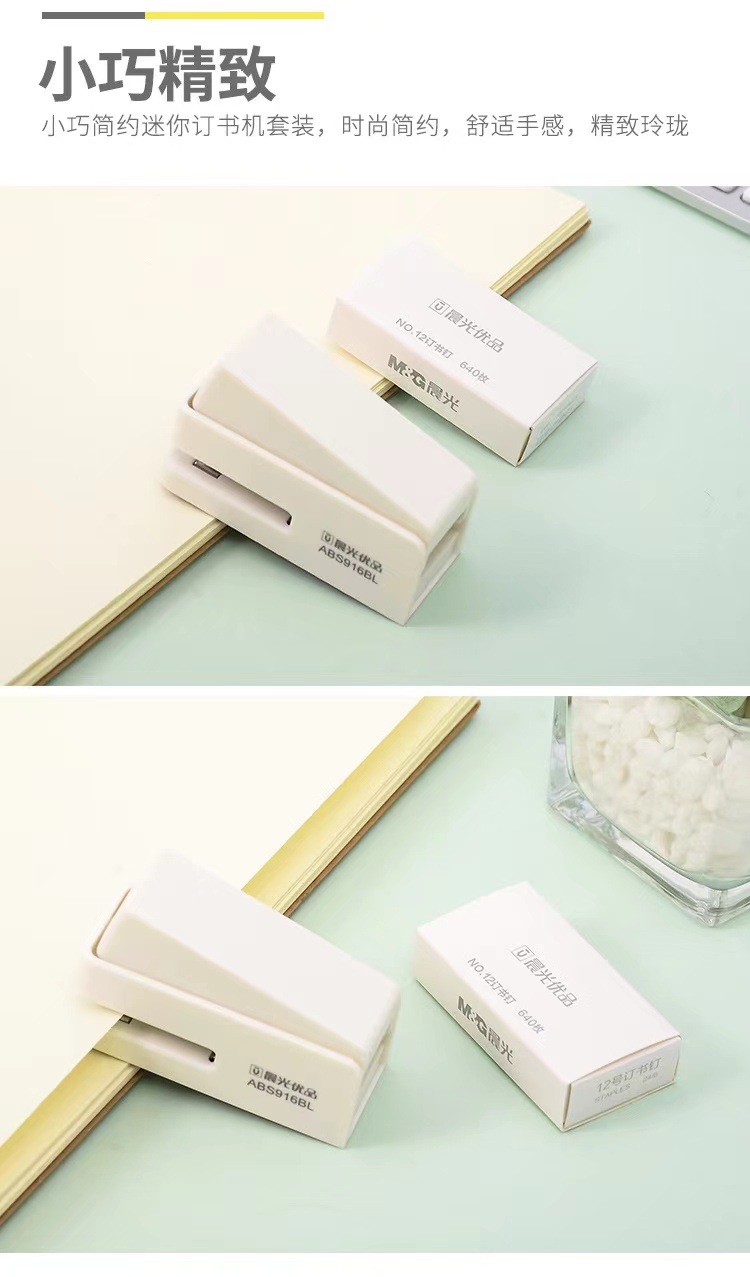 Chenguang Youpin 916BL 미니 스테이플러 세트 번호 12 안티 핀치 핸드 화이트 간단한 학생 사무실 컴팩트