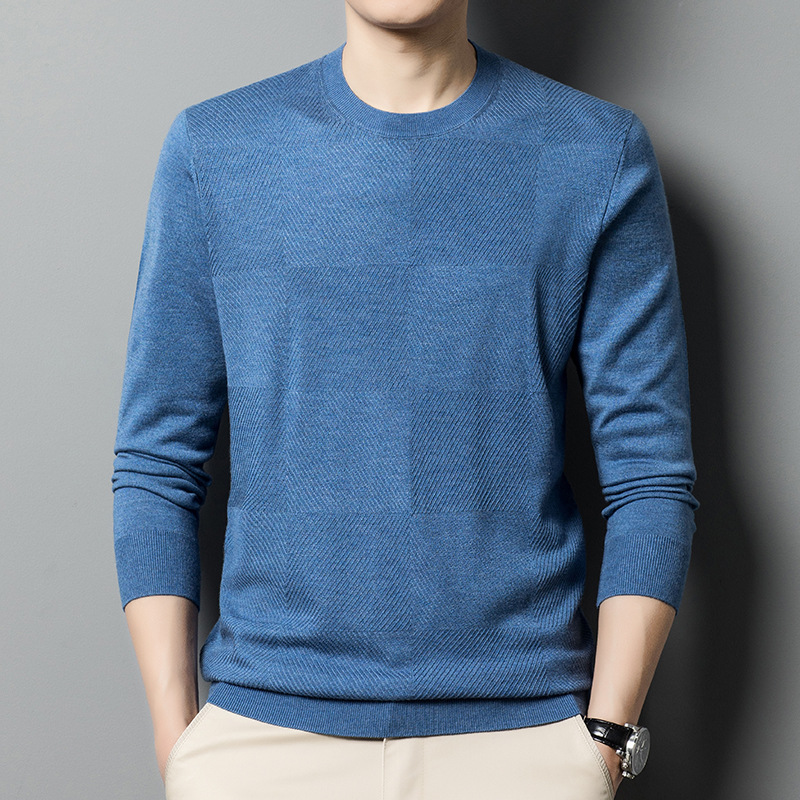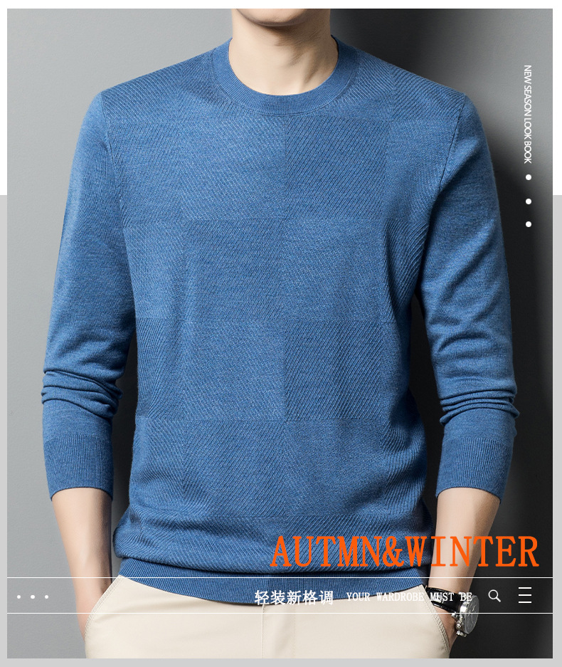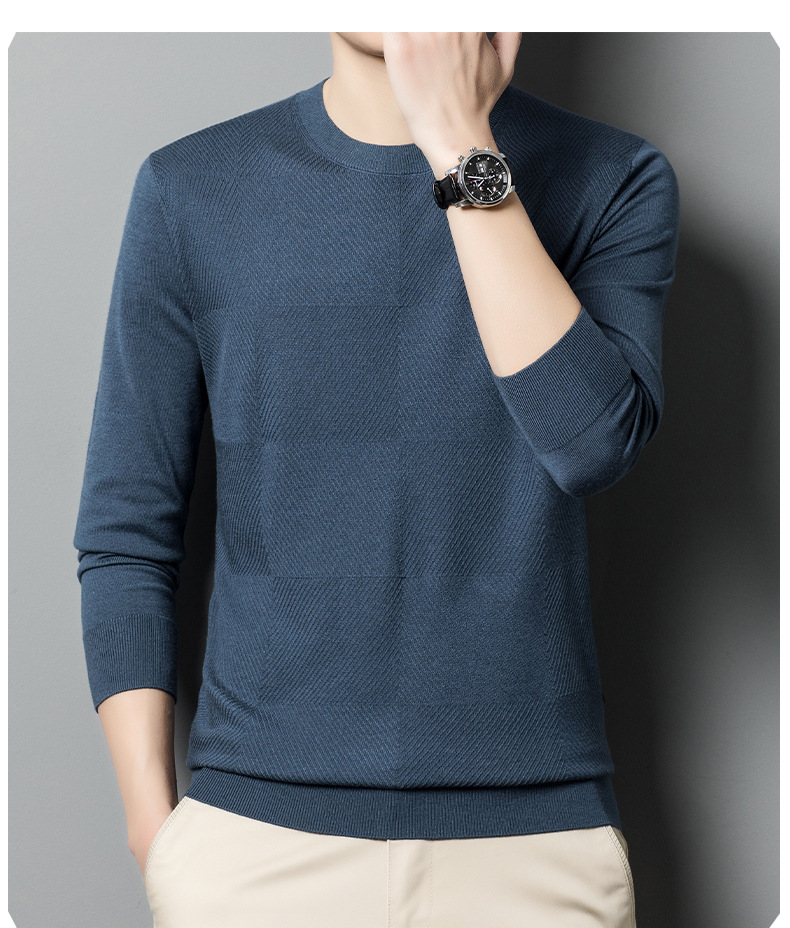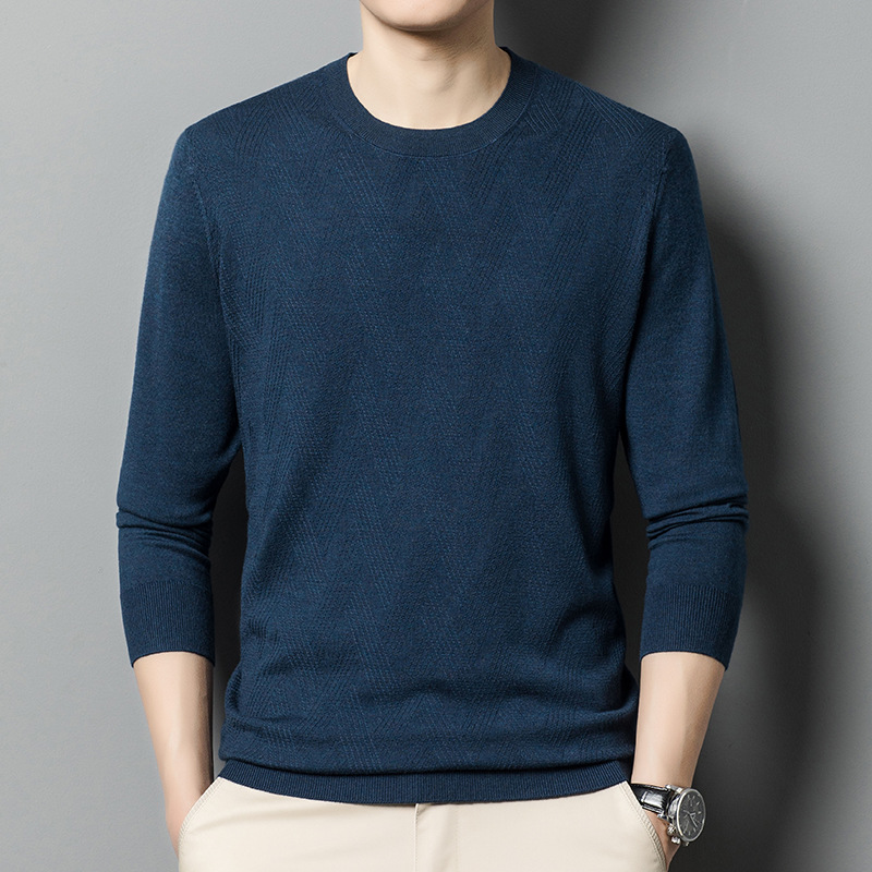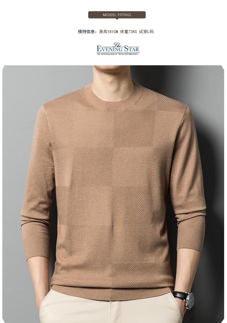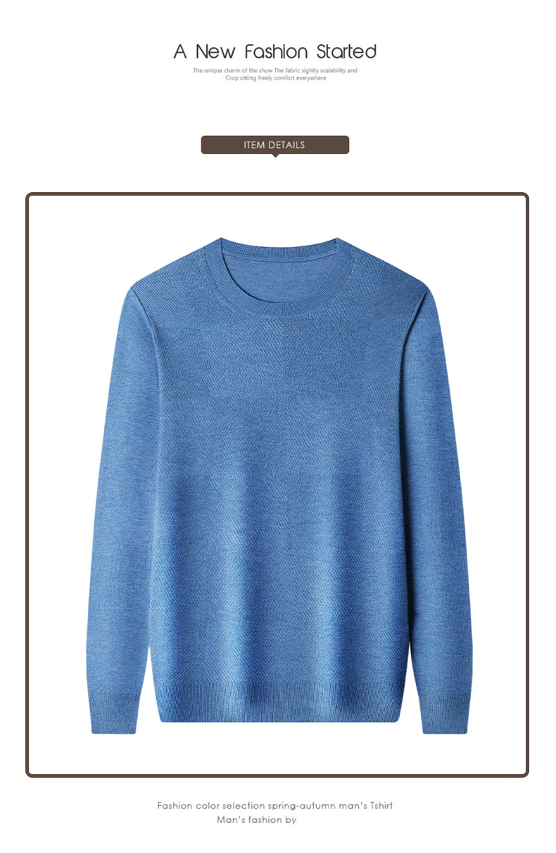 봄과 가을 얇은 울 니트 바닥 셔츠 남성 둥근 목 중년 스웨터 뽕나무 실크 긴팔 티셔츠 도매스토어 가기