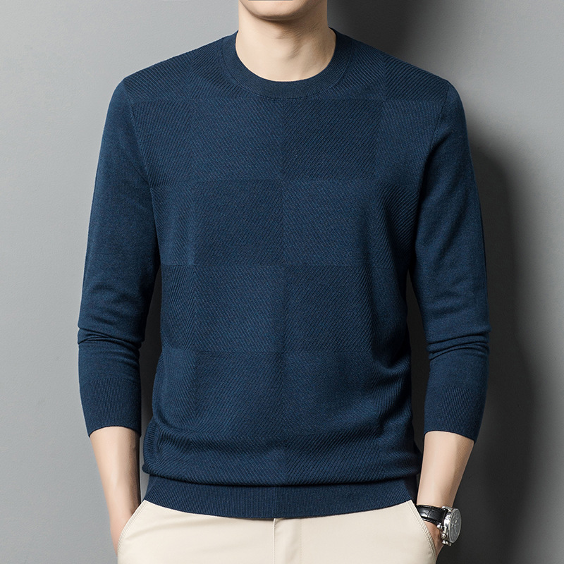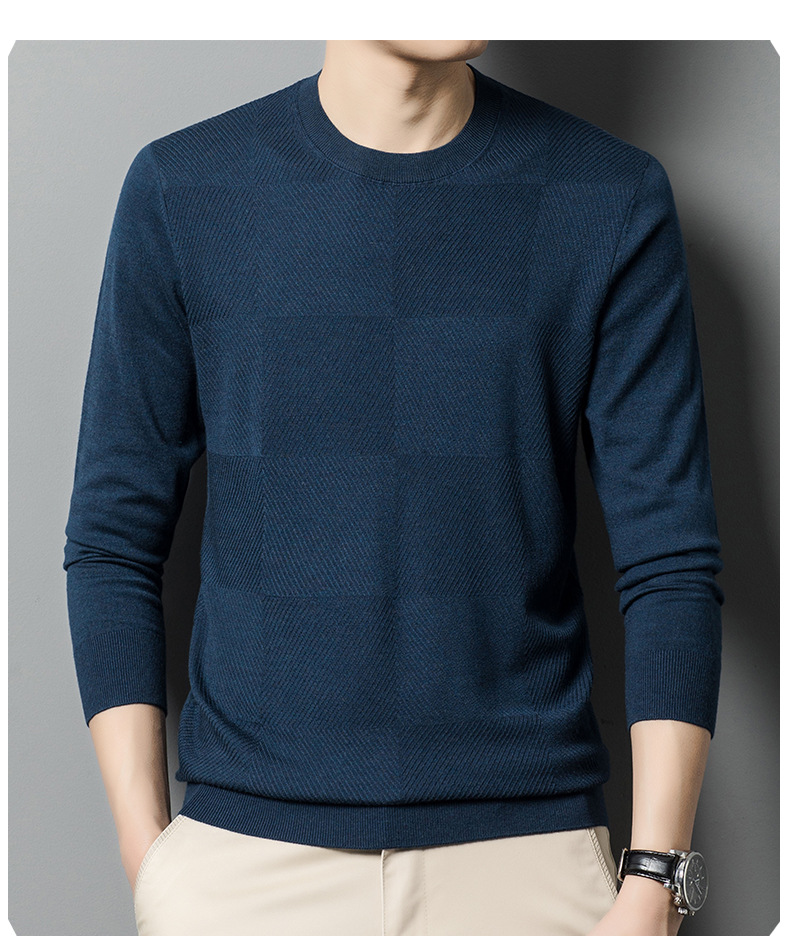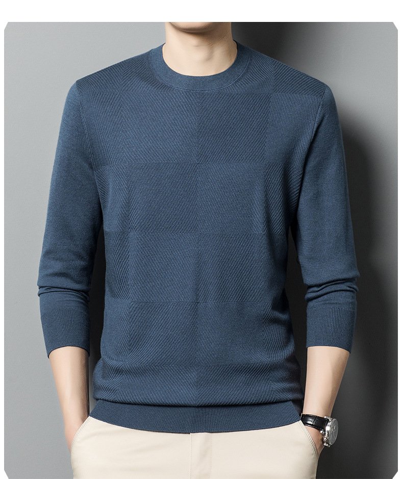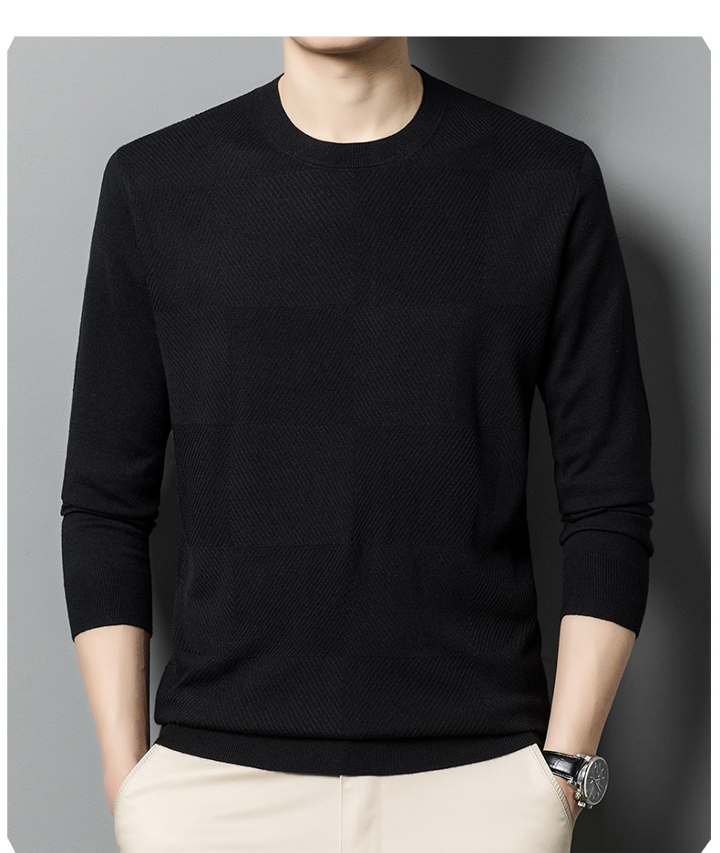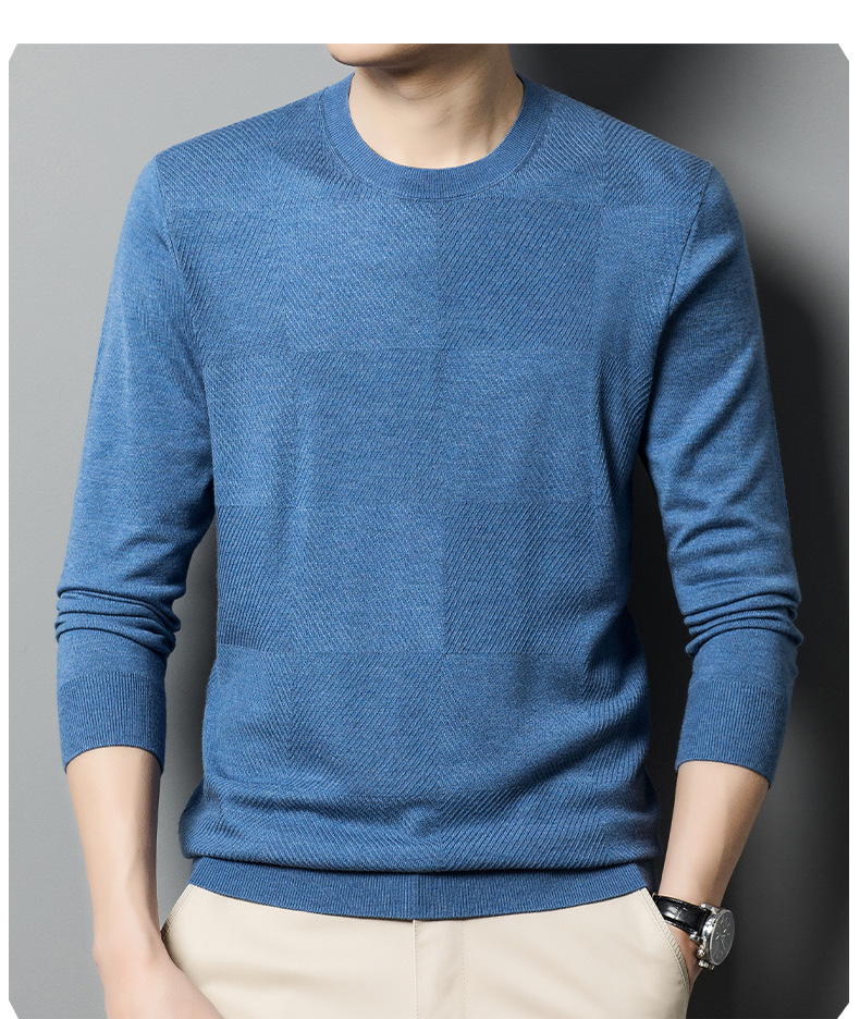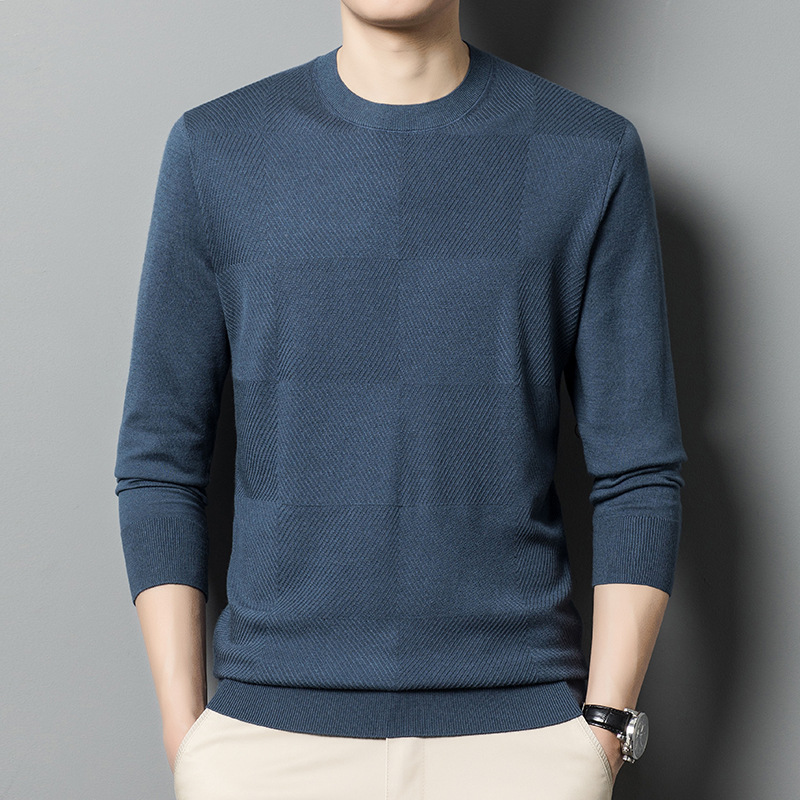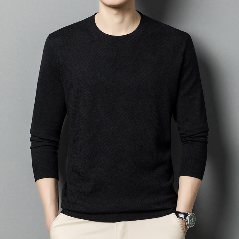 봄과 가을 얇은 울 니트 바닥 셔츠 남성 둥근 목 중년 스웨터 뽕나무 실크 긴팔 티셔츠 도매스토어 가기