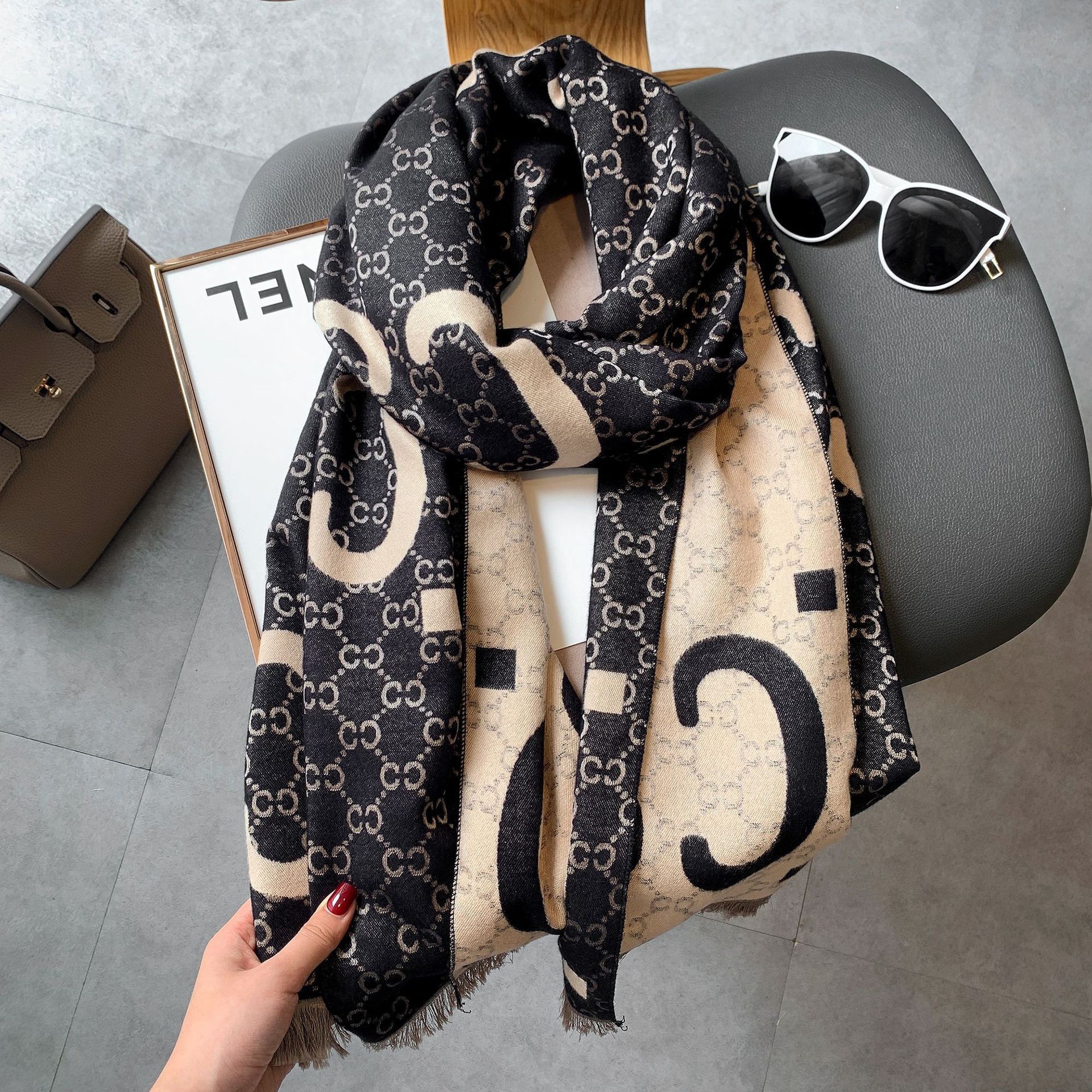 스카프 여자의 가을과 겨울 새로운 캐시미어 혼합 양면 색상 따뜻한 목도리 두꺼운 긴 스카프 하이 엔드 패셔너블 올 매치스토어 가기