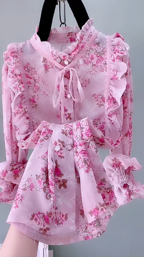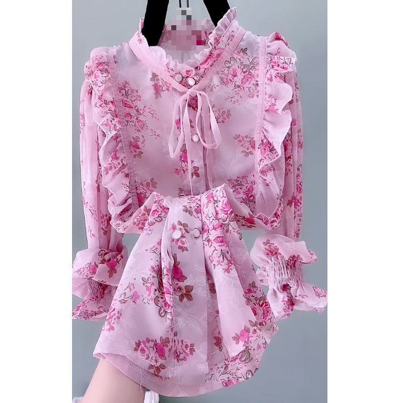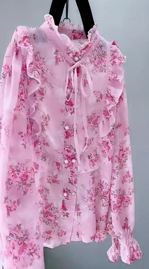 셔츠 여성의 봄 2024 새로운 긴 소매 유행 달콤한 세련된 프렌치 러플 플로랄 탑스토어 가기