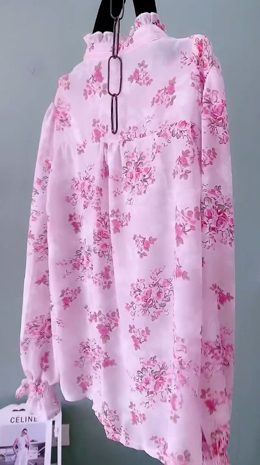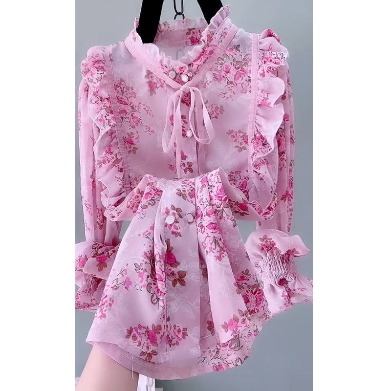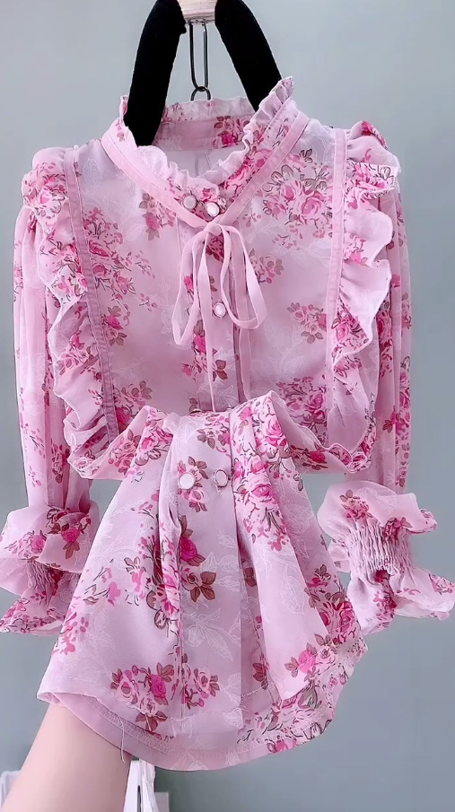 셔츠 여성의 봄 2024 새로운 긴 소매 유행 달콤한 세련된 프렌치 러플 플로랄 탑