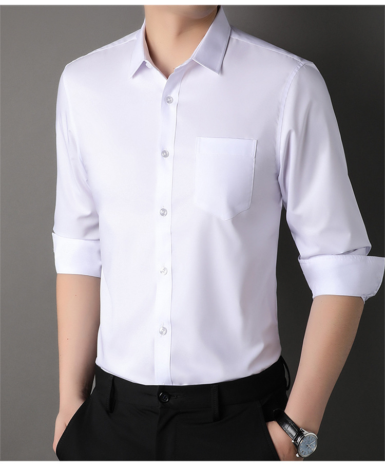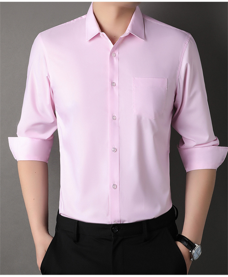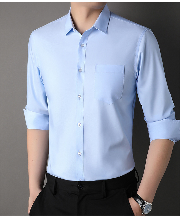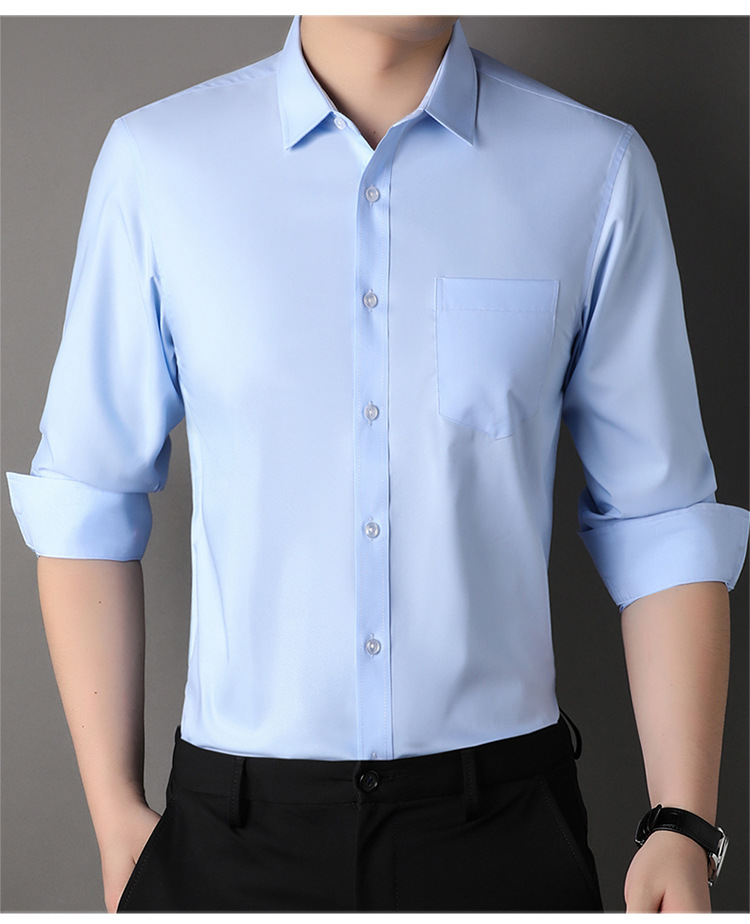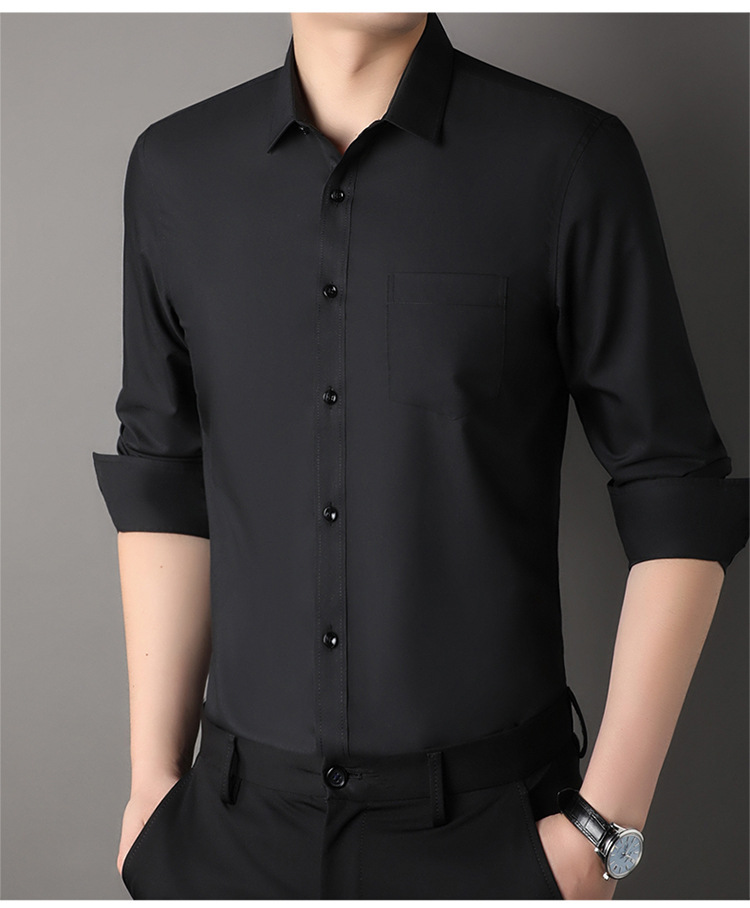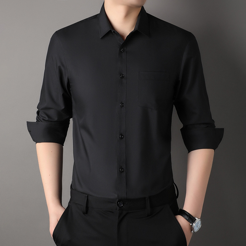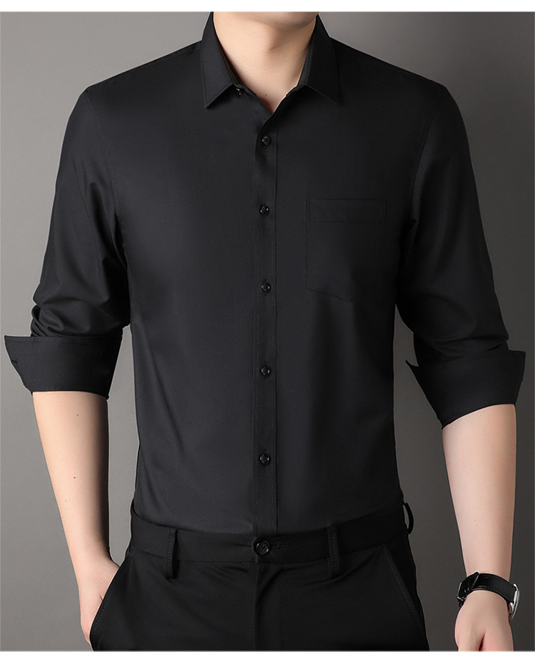 새로운 리얼 포켓 탑 남성용 긴팔 셔츠 중년 캐주얼 셔츠 솔리드 컬러 블랙 셔츠 아빠 다림질 셔츠