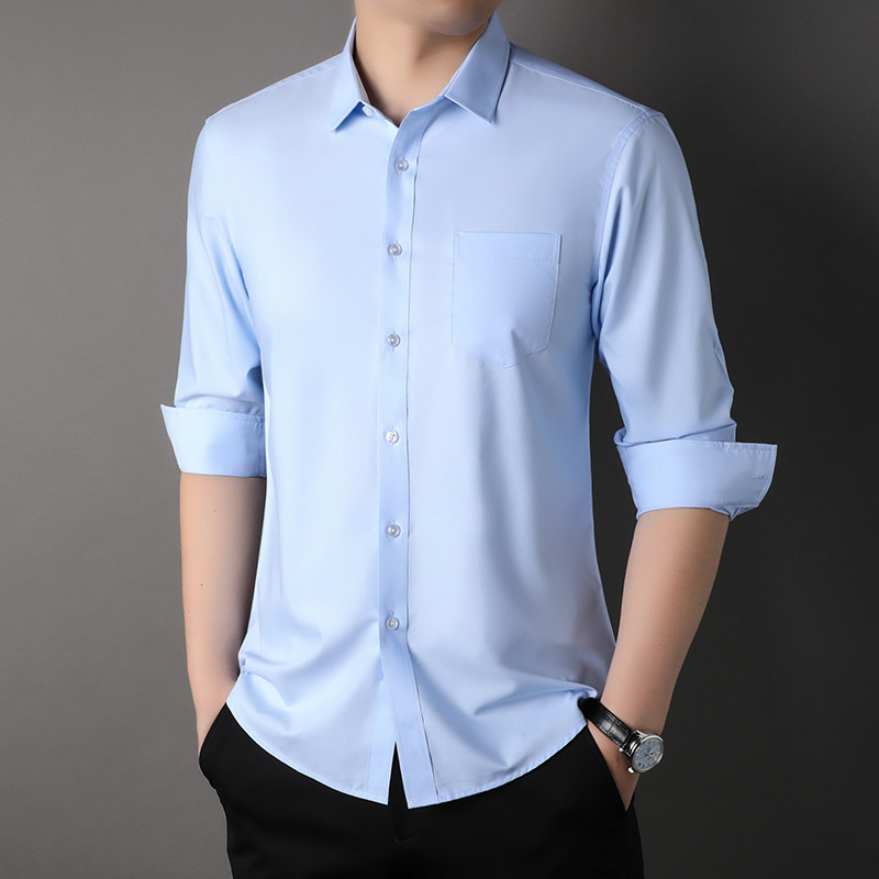 새로운 리얼 포켓 탑 남성용 긴팔 셔츠 중년 캐주얼 셔츠 솔리드 컬러 블랙 셔츠 아빠 다림질 셔츠스토어 가기