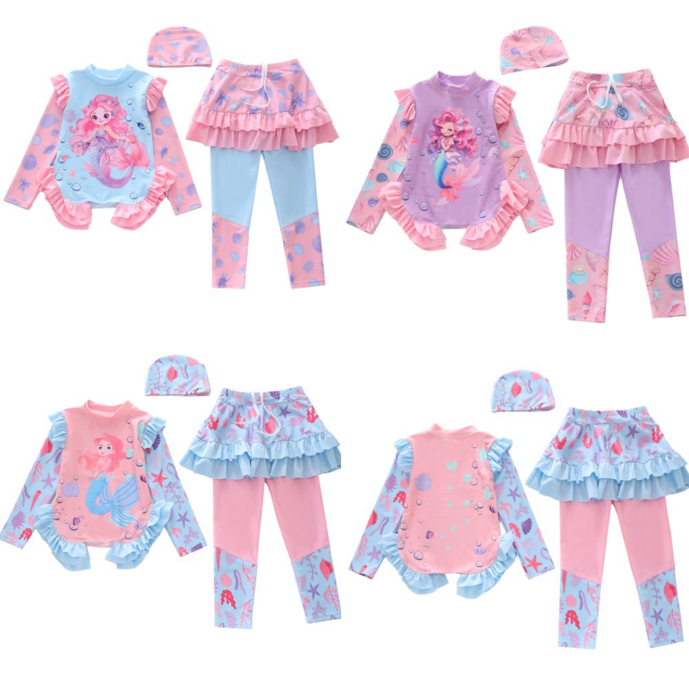 2024 년 새 어린이 수영복 여아 스플릿 수영복 중소 · 대형 아동소녀 선스크린 긴팔 여아 수영복