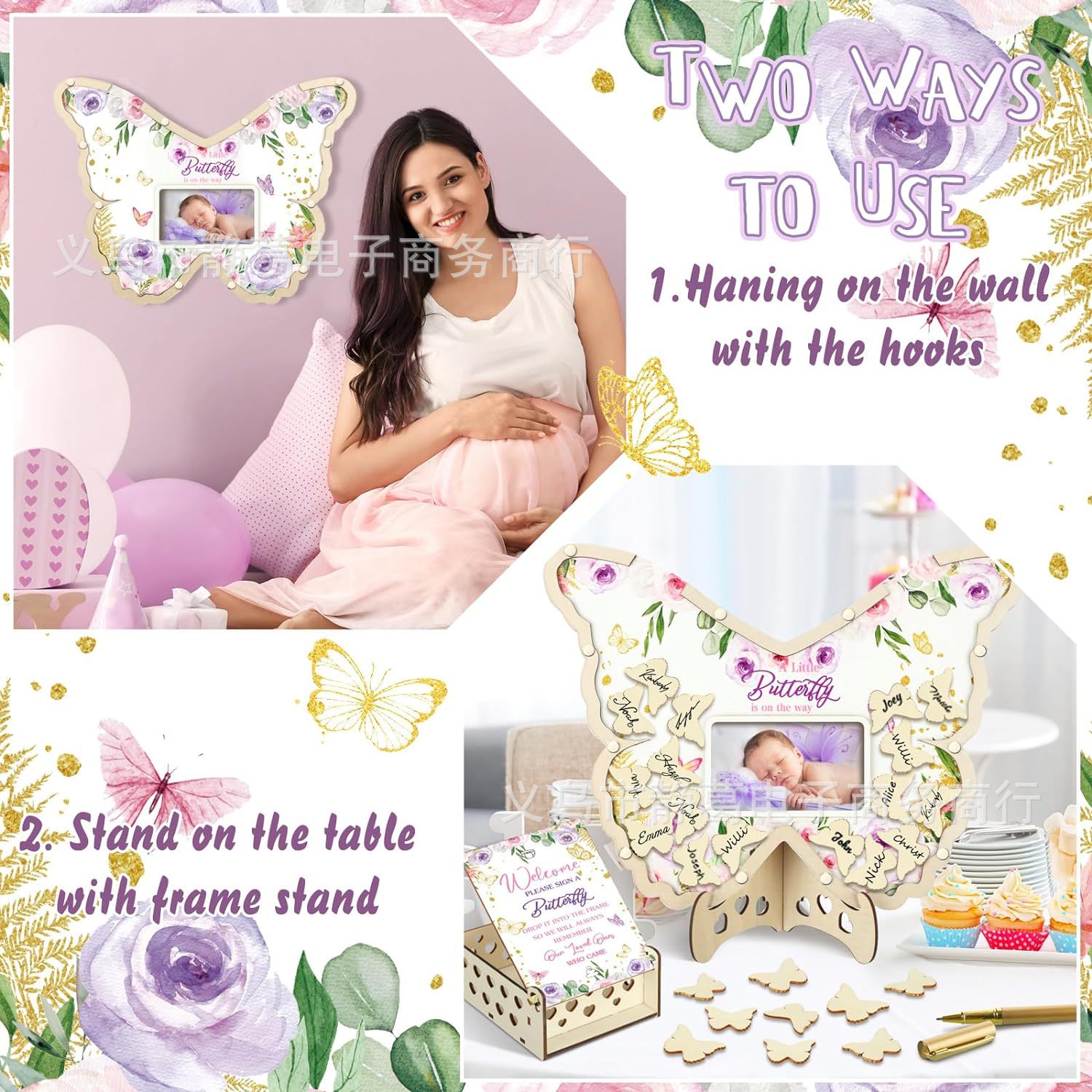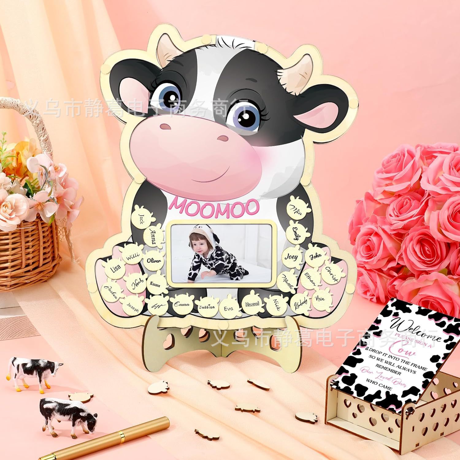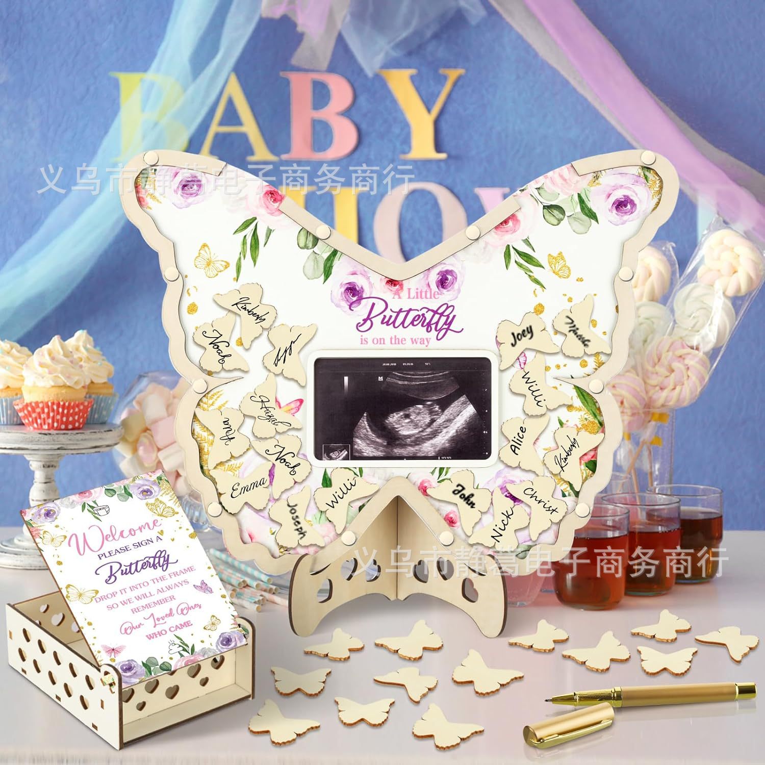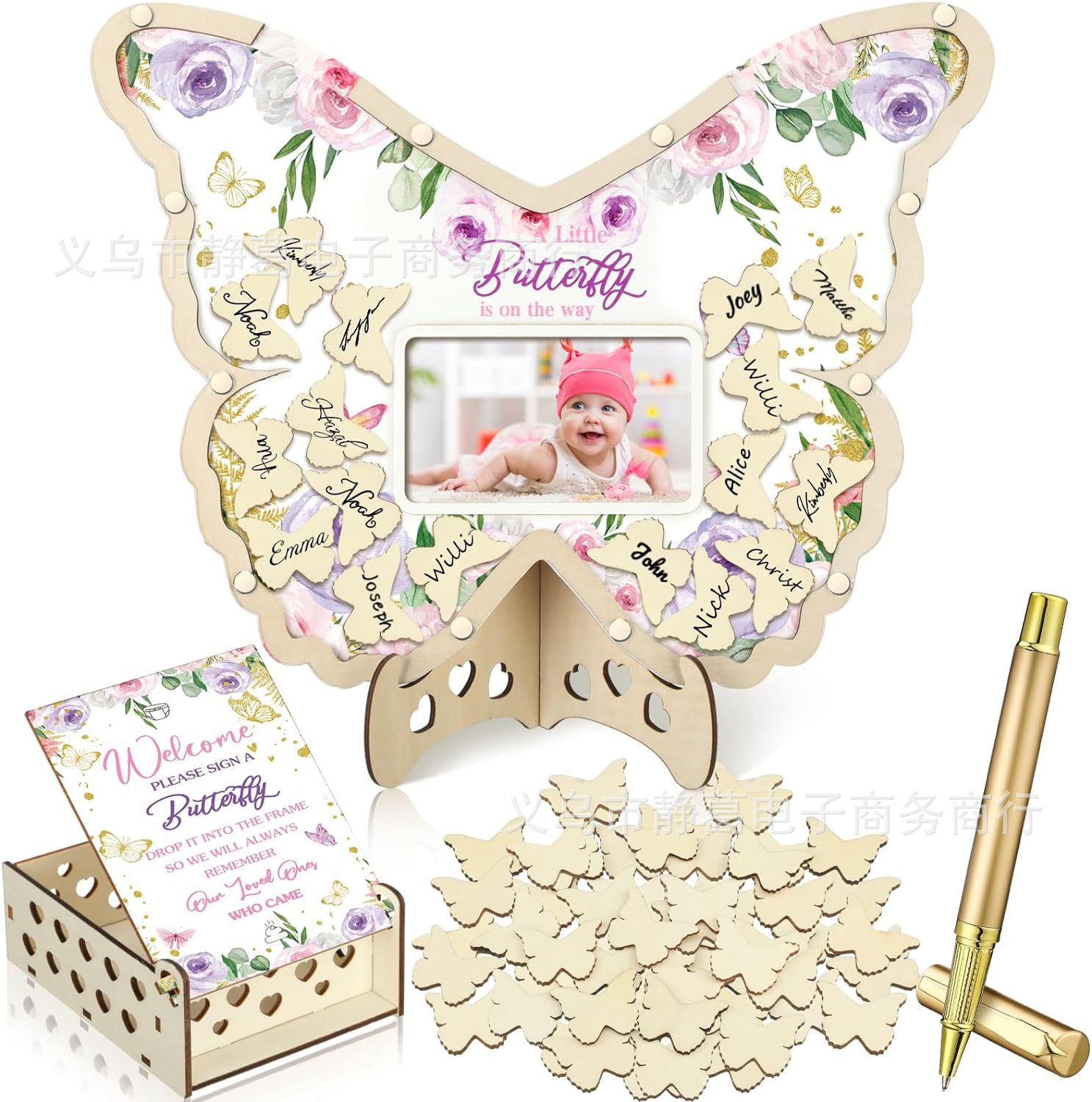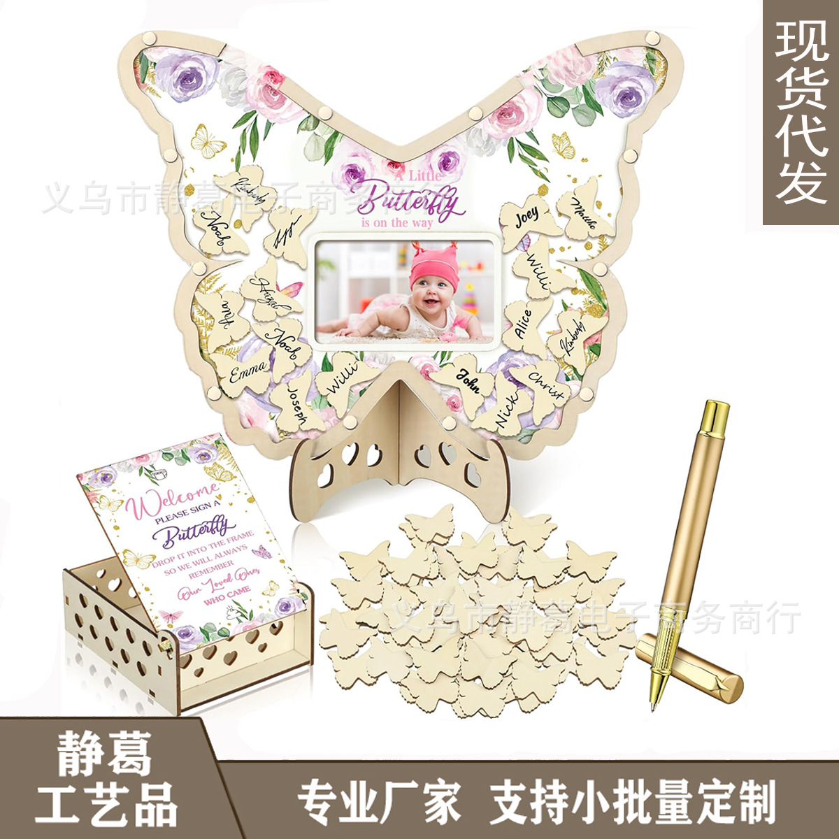 국경 재고 메시지 책 아크릴 사진 프레임 메시지 책 아기 선물 장식품 샤워 파티 60 나무 조각스토어 가기