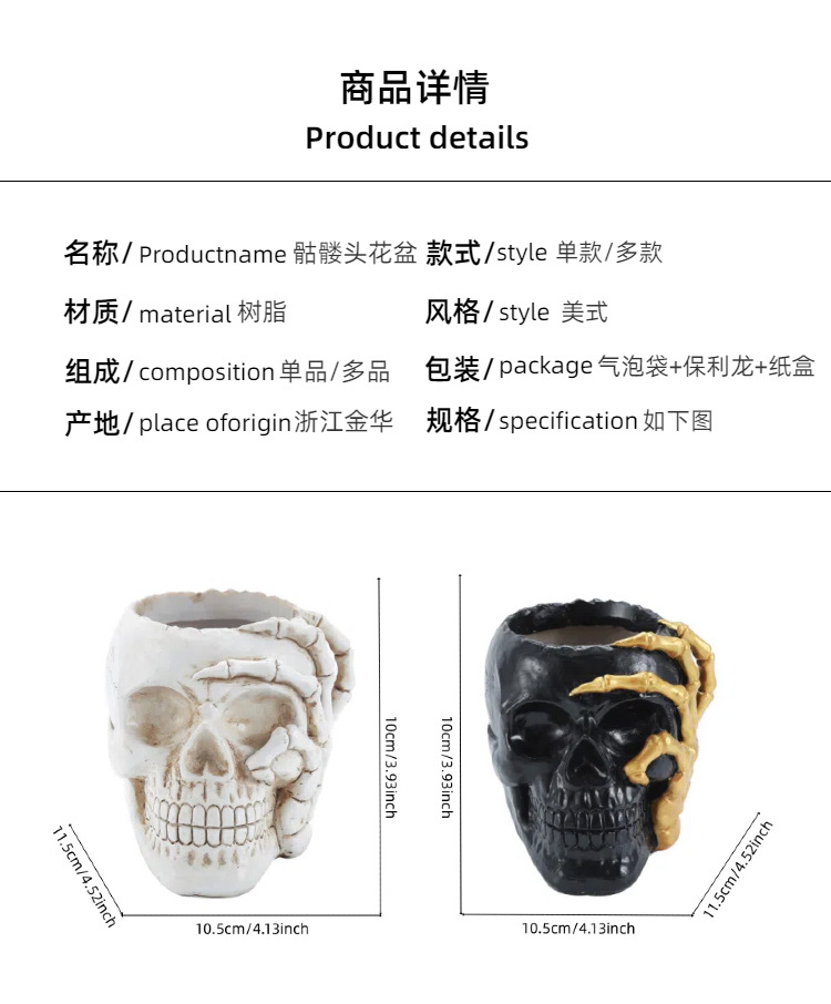 국경 간 새로운 인공 해골 공예 창조적 인 녹색 심기 꽃 냄비 정원 장식품 할로윈 장식 도매