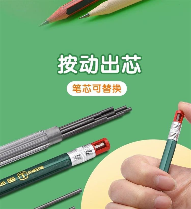 2B 자동 연필 2.0mm 거친 리필 프레스 유형 초등학교 학생들은 나무 연필로 연속 2mm 리필 쓰기스토어 가기