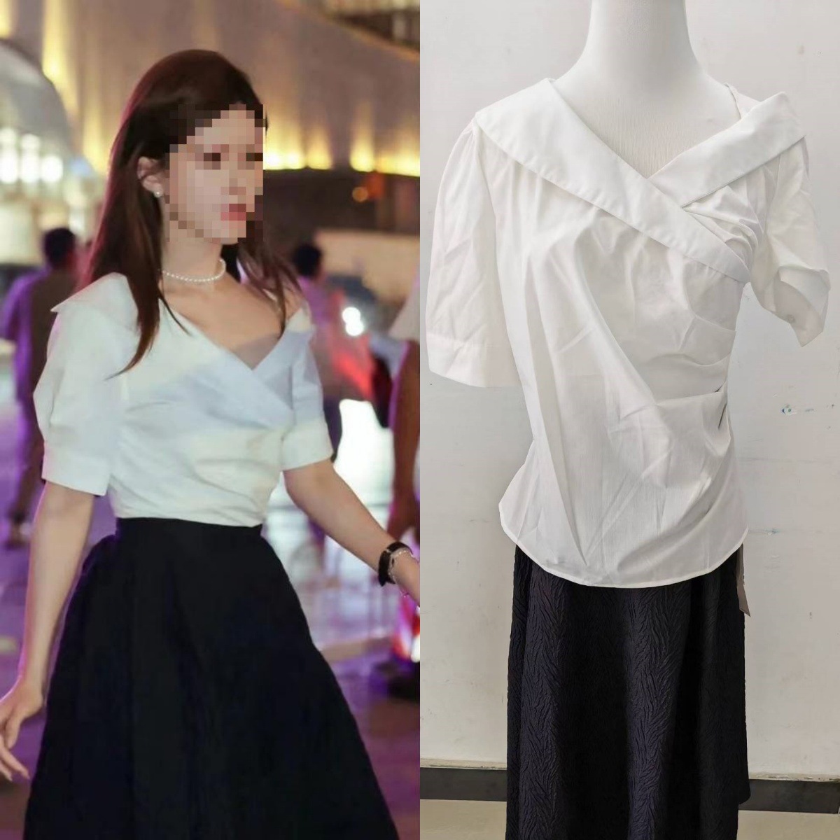 장기 재고 2025 봄 눈부신 조아오루시 같은 스타일의 비대칭 칼라 셔츠 탑과 푹신한 여성용 스커트스토어 가기