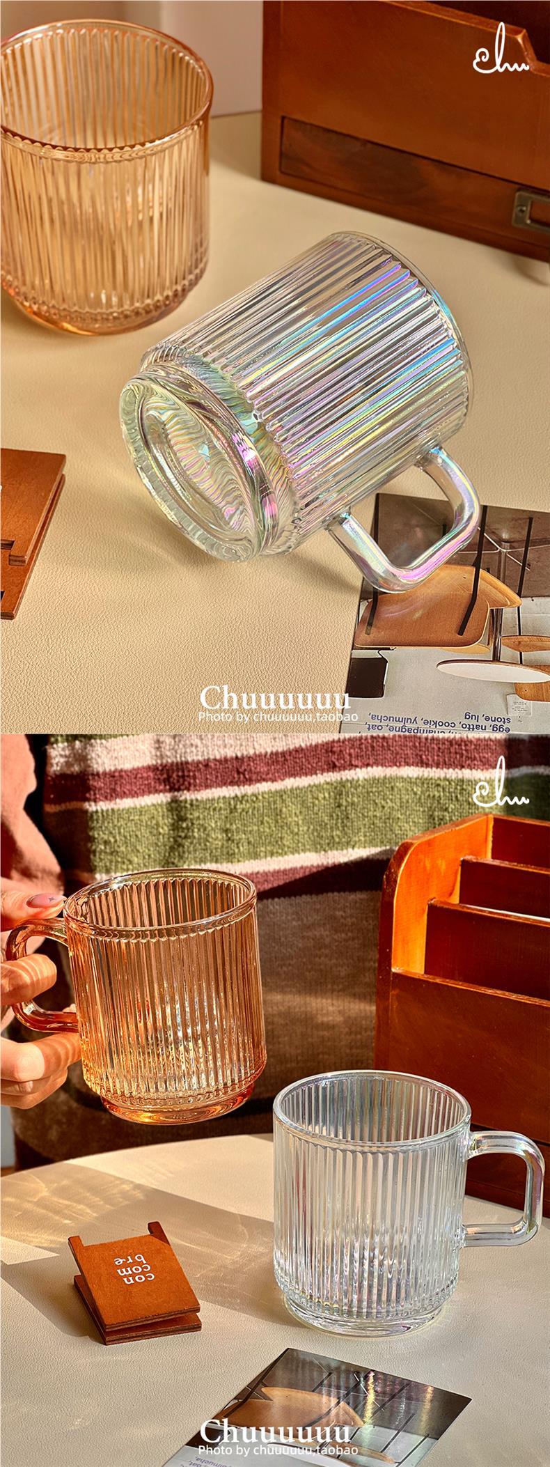 Ins 스타일 줄무늬 유리 컵 Shold Water Cup 가정용 음료 컵 높은 색상 가치 머그잔 프리미엄 센스 커피 컵