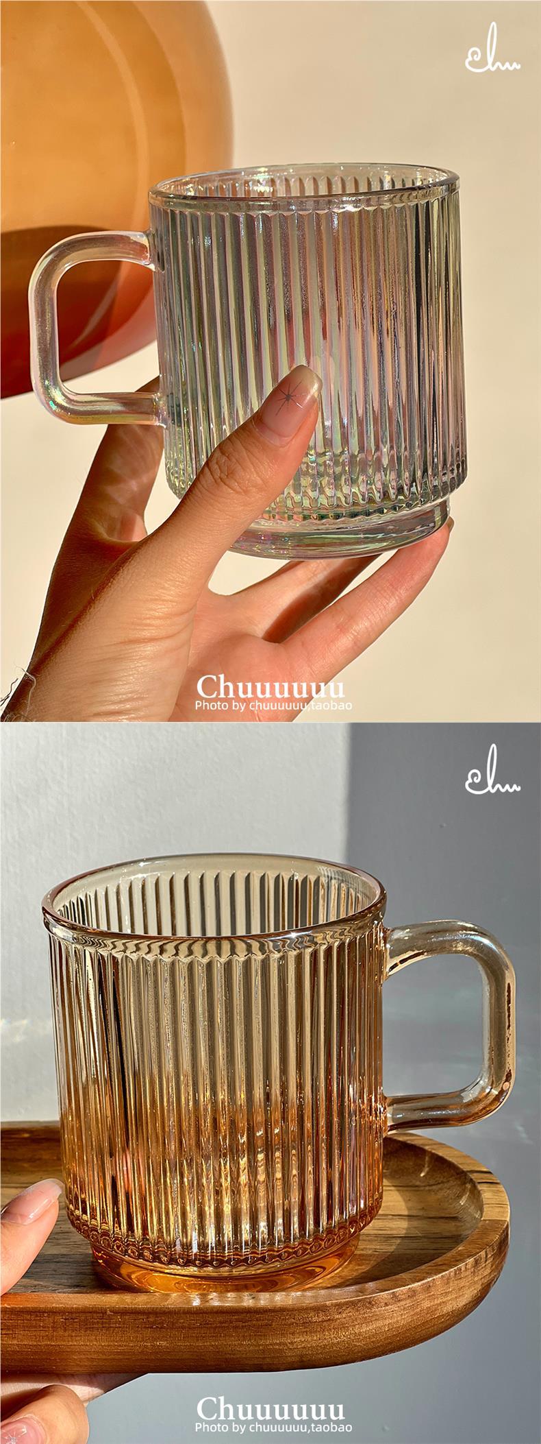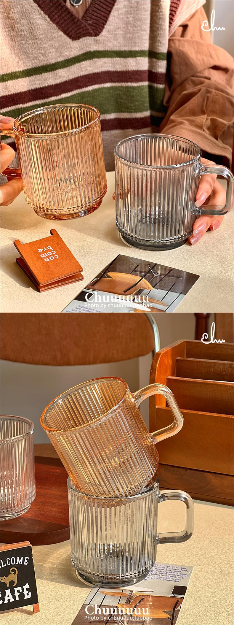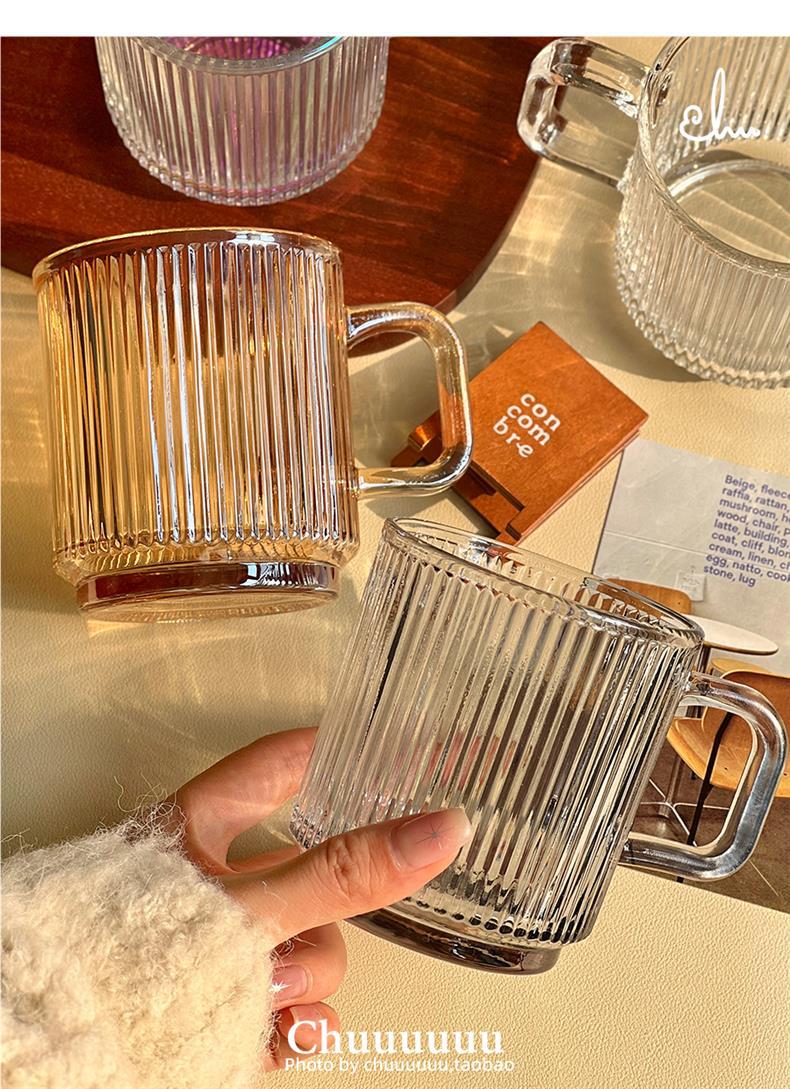 Ins 스타일 줄무늬 유리 컵 Shold Water Cup 가정용 음료 컵 높은 색상 가치 머그잔 프리미엄 센스 커피 컵스토어 가기