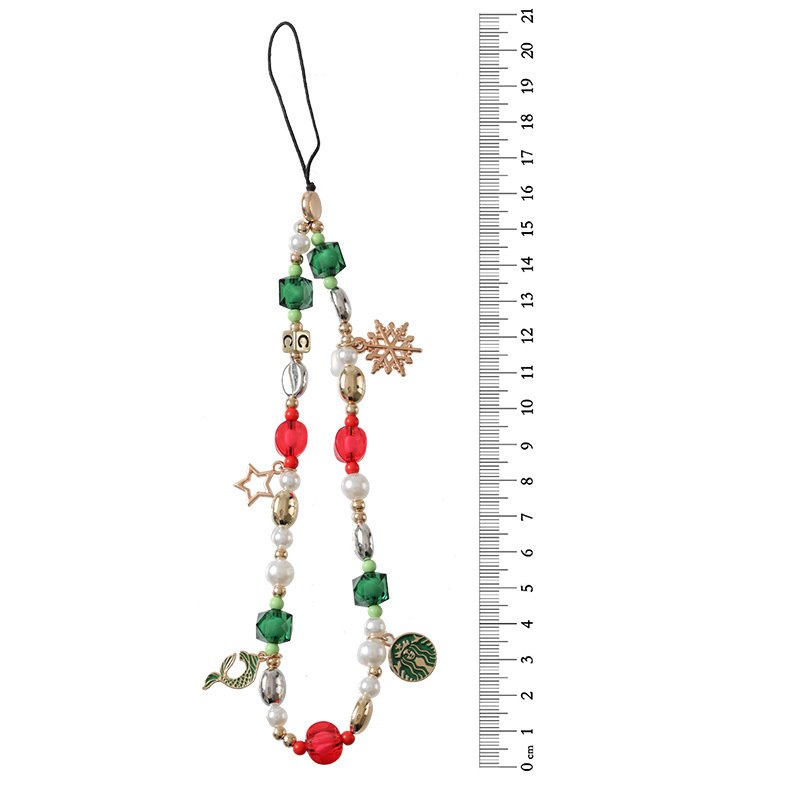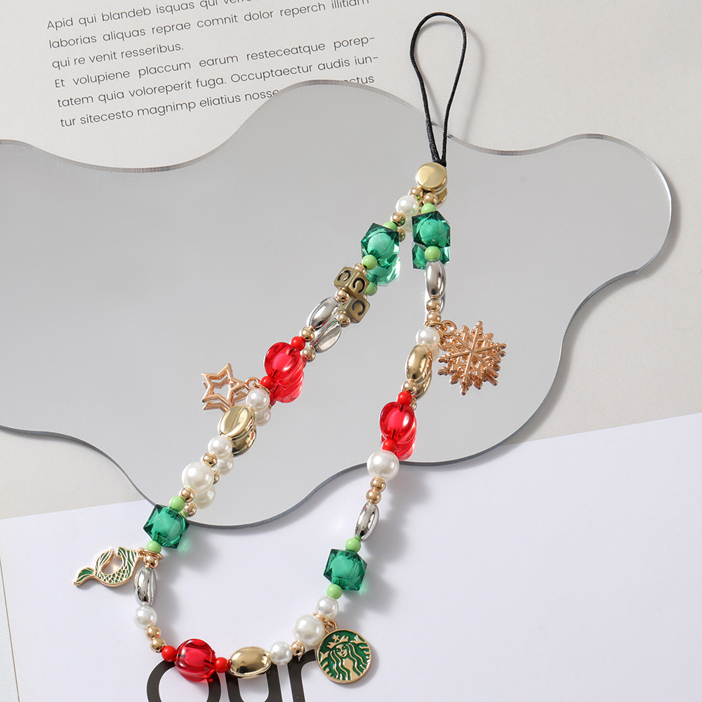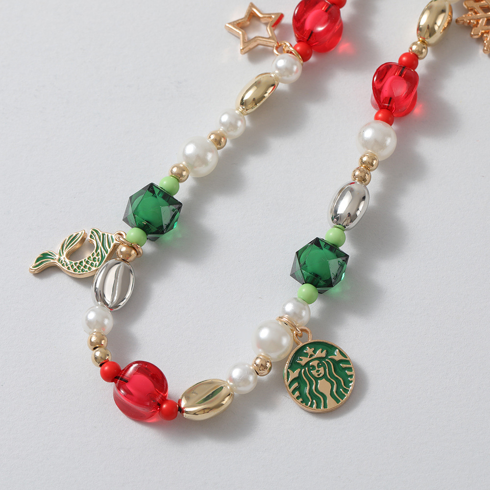 새로운 구슬 휴대 전화 체인 스타 벅스 펜던트 작은 물고기 다섯개 별 빨간색과 녹색 여성 휴대 전화 끈 국경스토어 가기