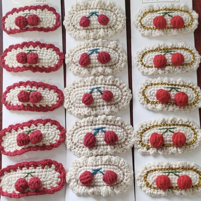 핸드 크로 셰 뜨개질 헤어 클립 크로 셰 뜨개질 헤어 클립 완성 된 헤어 클립 어린이 헤어 클립 클립 Bb 클립 사이드 클립