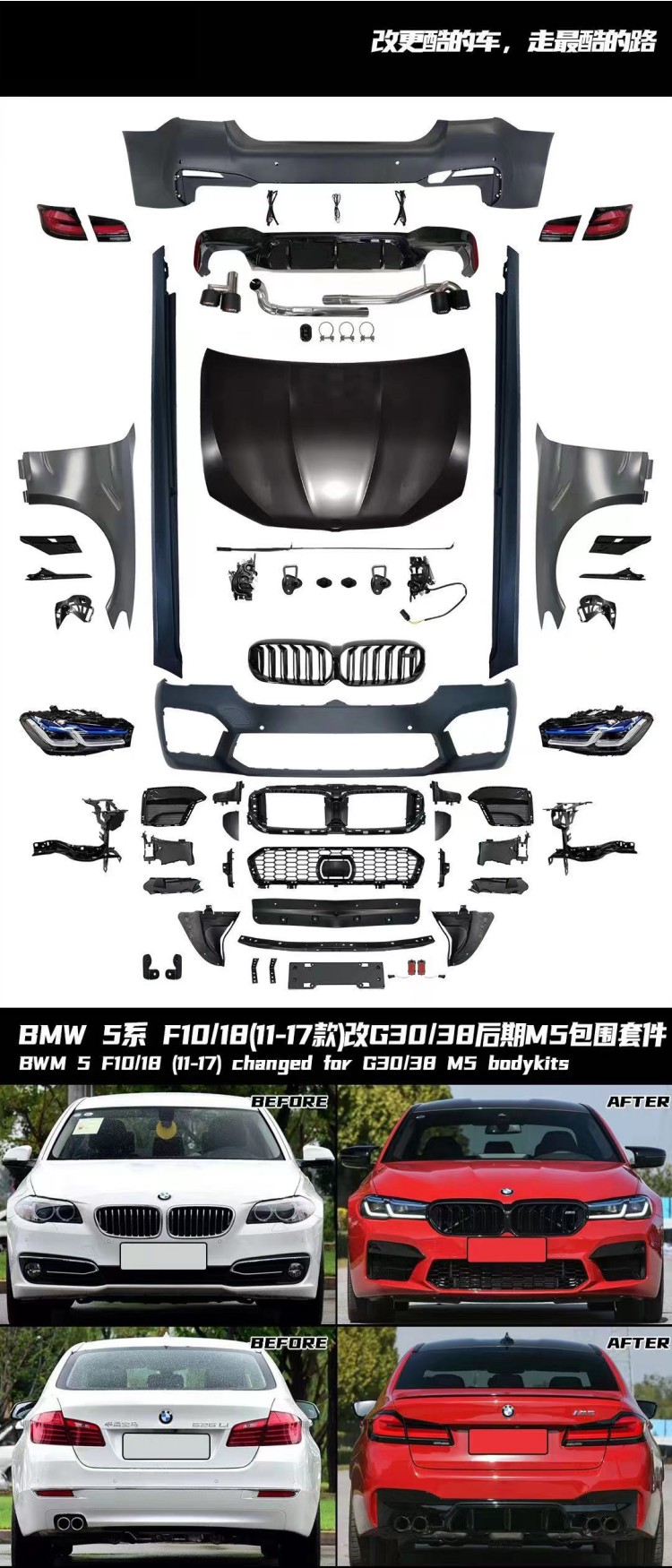 5 시리즈 F10/18G30/G38 M5/MT 대형 서라운드 전면 및 후면 바 전면 헤드 라이트 오래된 변경 새로운 서라운드