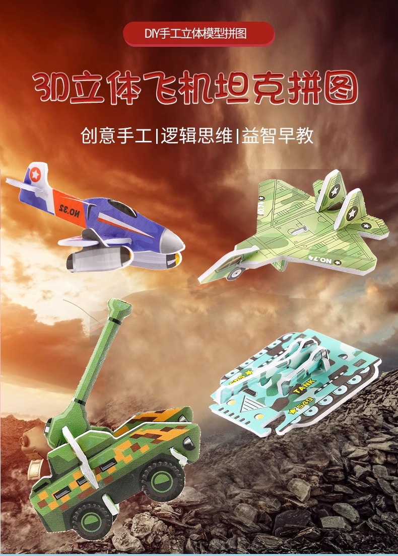 3D 만화 비행기 입체 퍼즐 어린이 선물 크리 에이 티브 DIY 유치원 손으로 조립 퍼즐 문구 선물스토어 가기