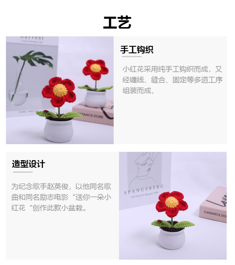 미니 작은 화분에 심은 식물 장식품 양모 꽃은 당신에게 작은 붉은 꽃 크로스 테두리 완성 손으로 짠 양모 시뮬레이션 꽃을 보냅니다.스토어 가기