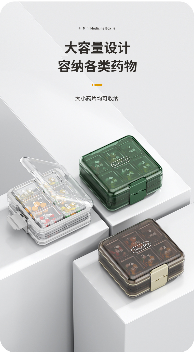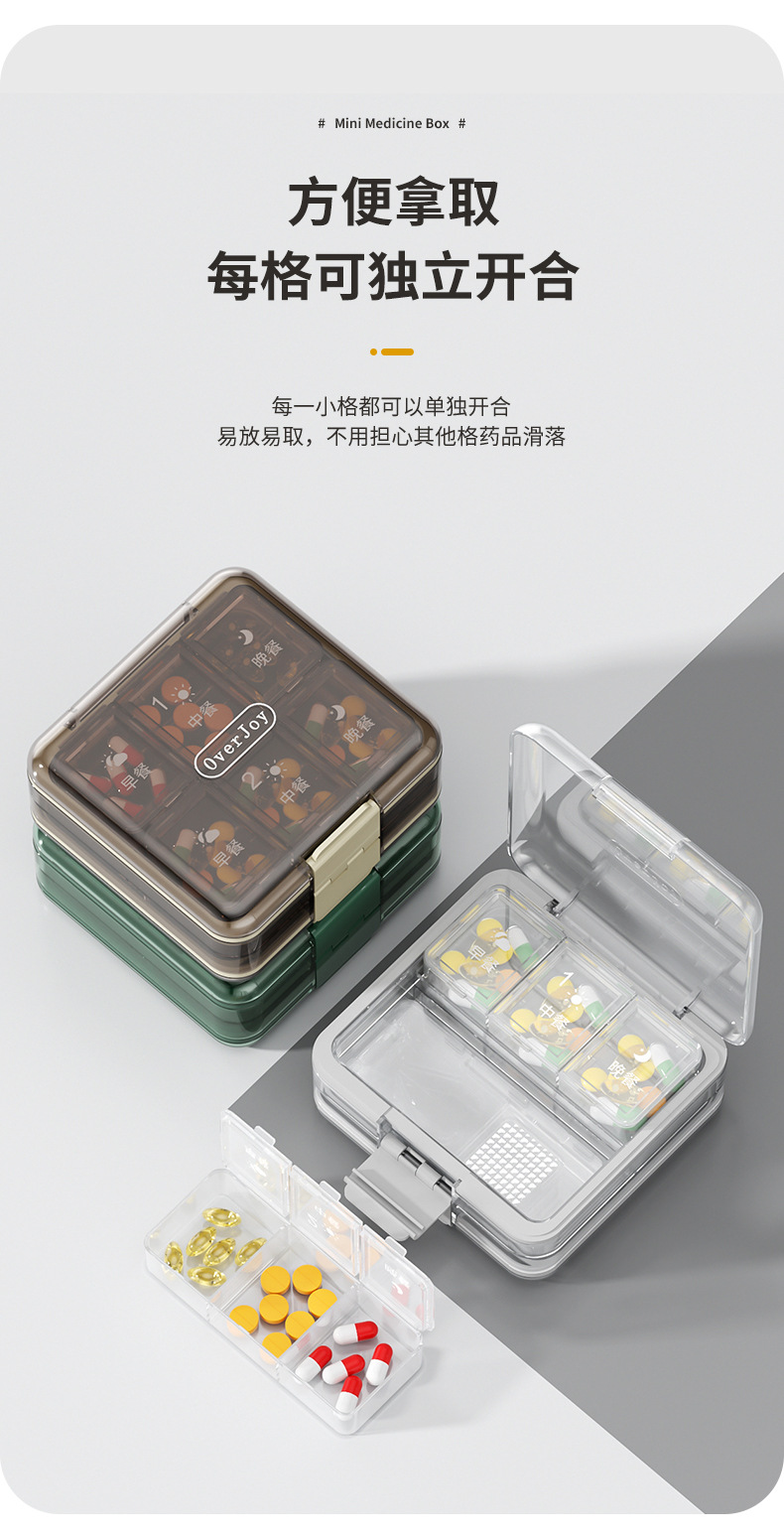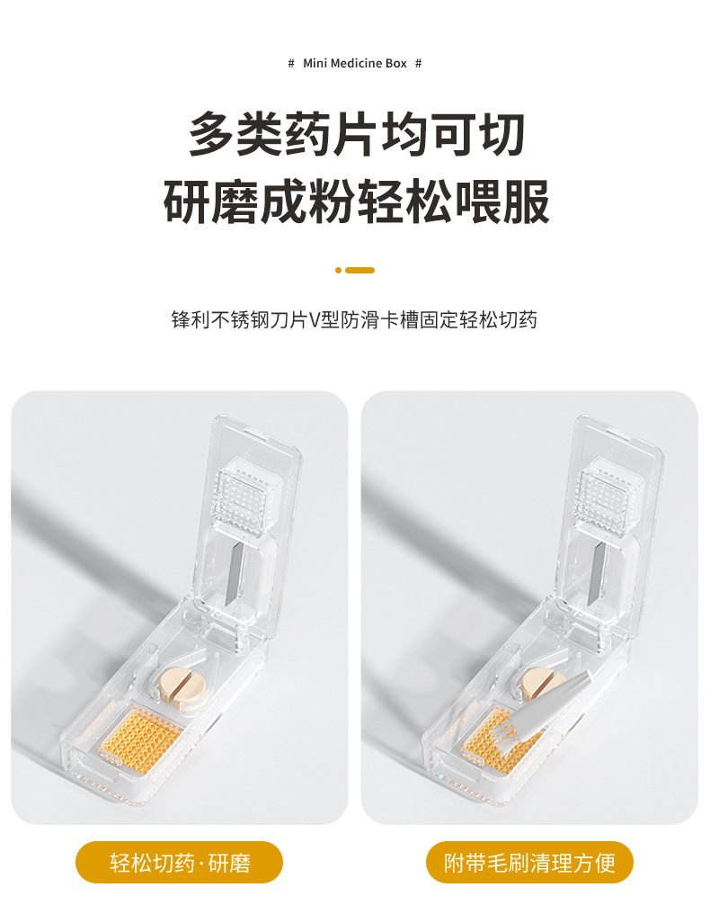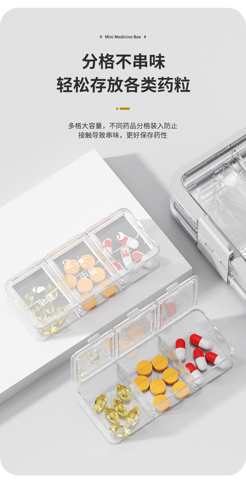 이중 강화 밀봉 3칸 약통 휴대용 약 절단기 및 분쇄기 알약 캡슐 분할 소형 약통스토어 가기