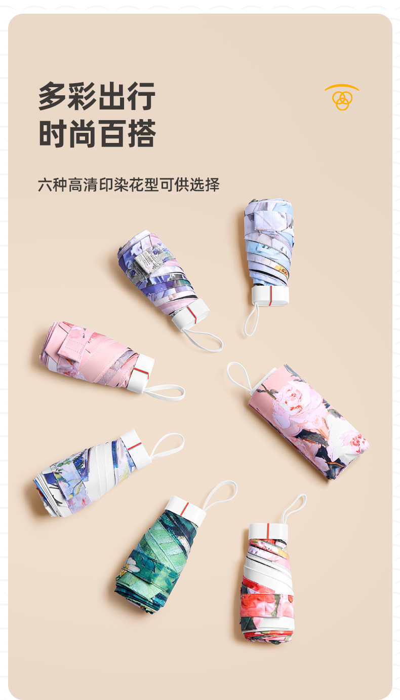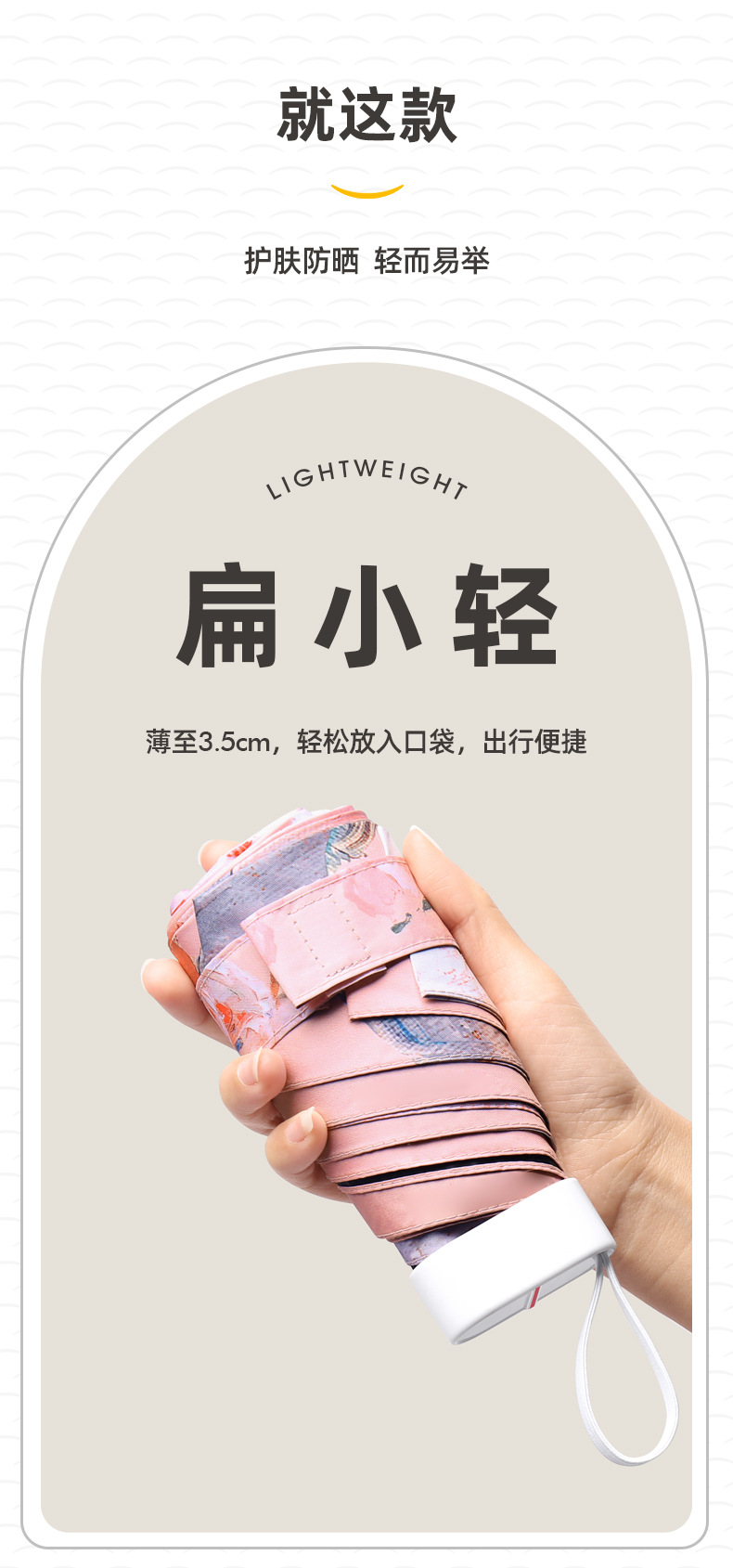 인쇄 된 평면 6 배 우산 태양 우산 여성 그림 손으로 그린 바람 미니 편리한 양산 우산 이중 사용 사용자 정의스토어 가기