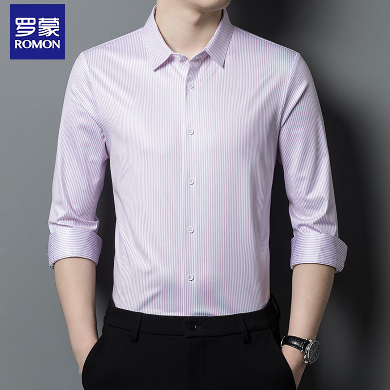 Romon 하이 엔드 멀 베리 실크 반팔 셔츠 남성 여름 신작 중년 캐주얼 남성 스트라이프 아이스 실크 셔츠 얇은