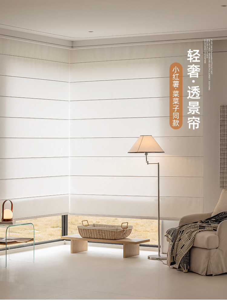 가벼운 럭셔리 로마 커튼 거실 스터디 레스토랑 사무실 블라인드 쉐이딩 리프팅 롤러 커튼 일본 리넨스토어 가기