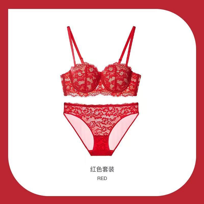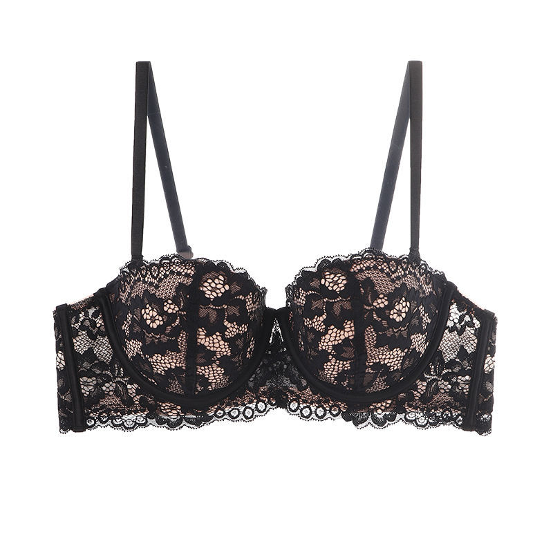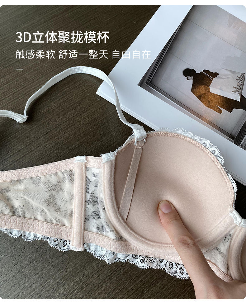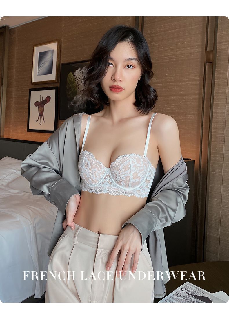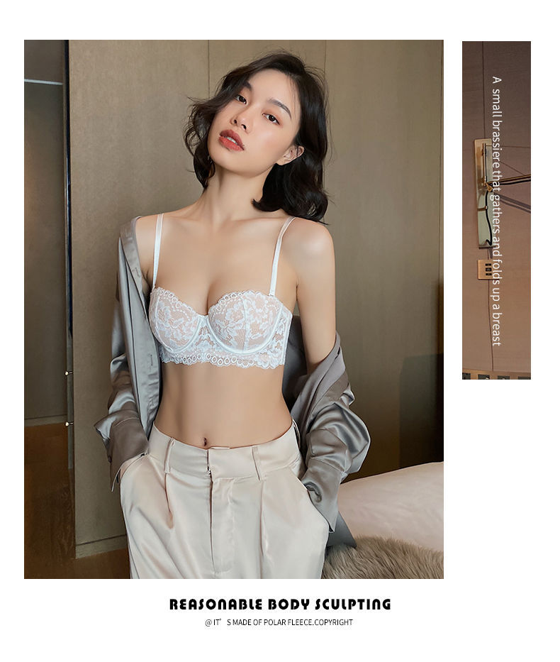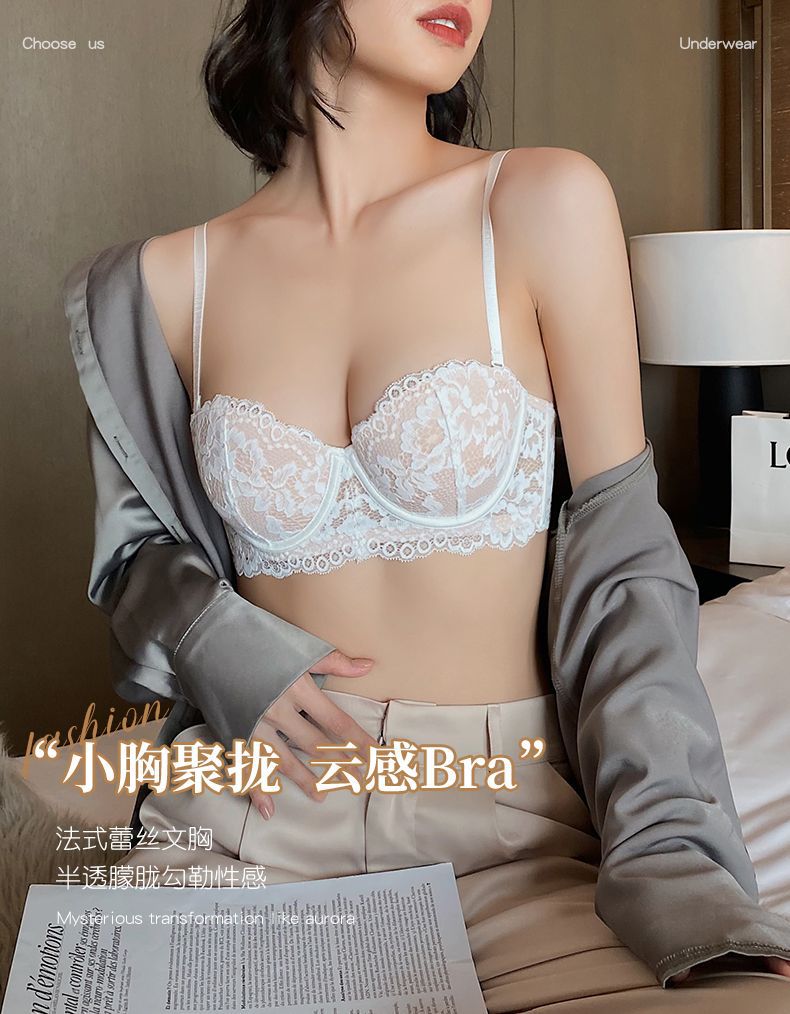 작은 가슴을 가진 여성을 위한 크로스보더 속옷, 푹신한 소프트 언더와이어 처짐 방지 프렌치 퓨어 러스틱 레이스 섹시한 하프컵 브라스토어 가기