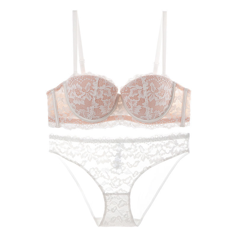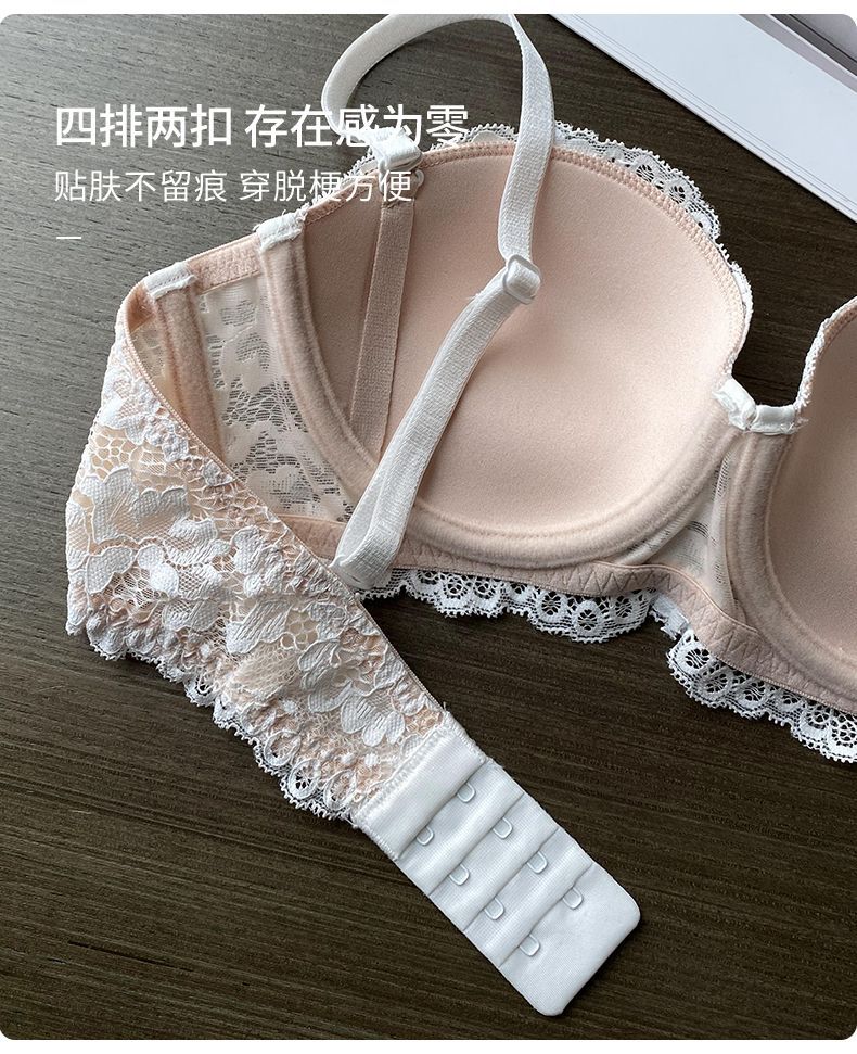 작은 가슴을 가진 여성을 위한 크로스보더 속옷, 푹신한 소프트 언더와이어 처짐 방지 프렌치 퓨어 러스틱 레이스 섹시한 하프컵 브라