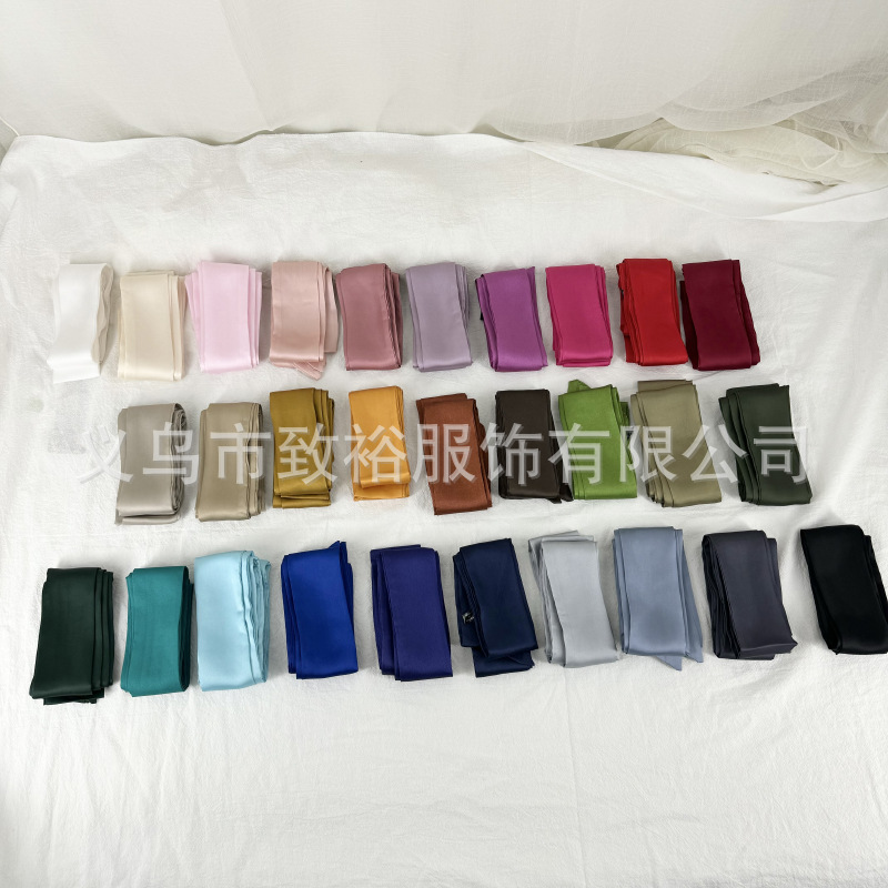 새로운 유럽과 미국의 얇은 좁은 단색 긴 리본 바인딩 백 핸들 실크 스카프 바인딩 헤어 장식 전문 작은 스카프 스카프스토어 가기