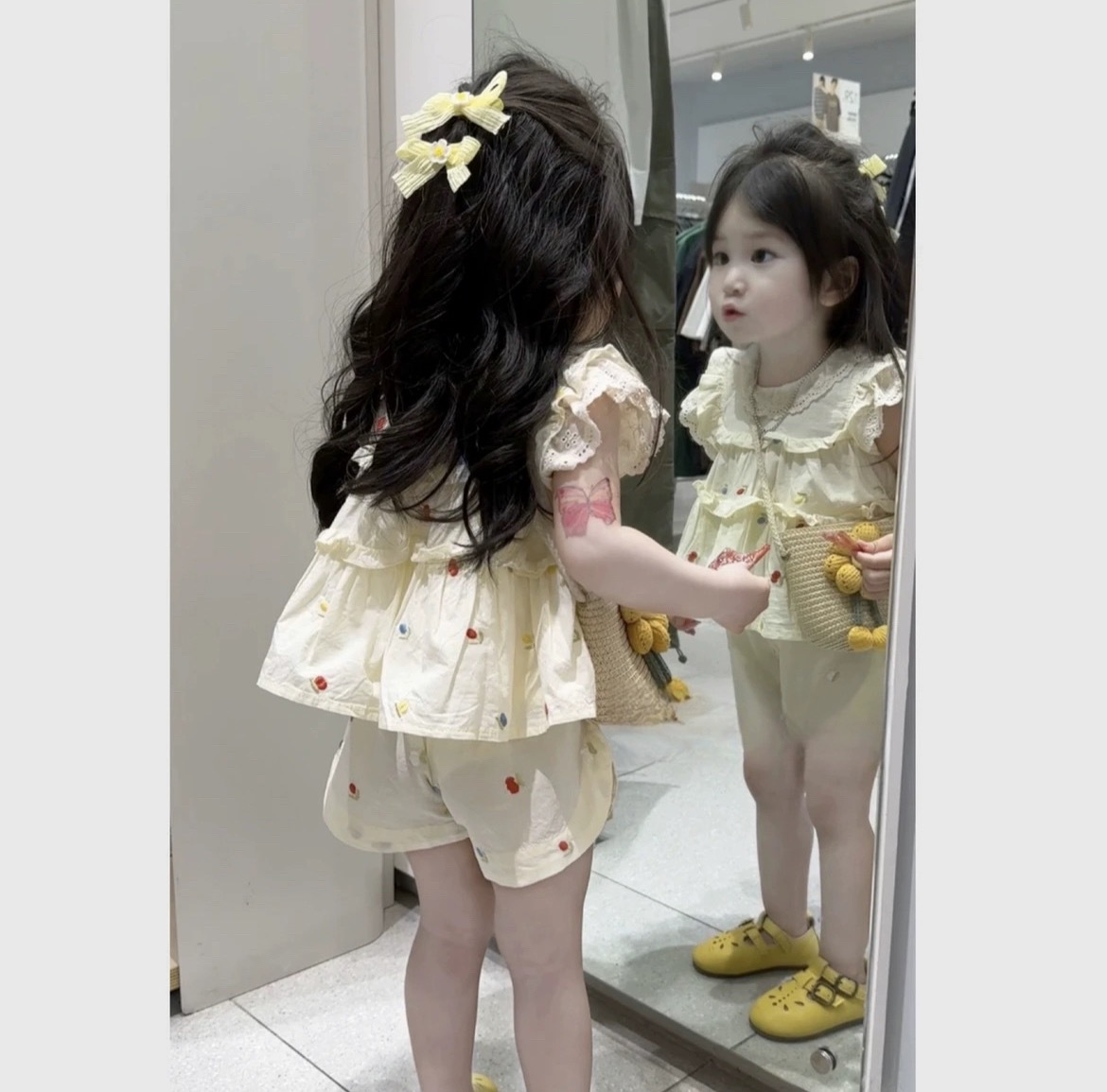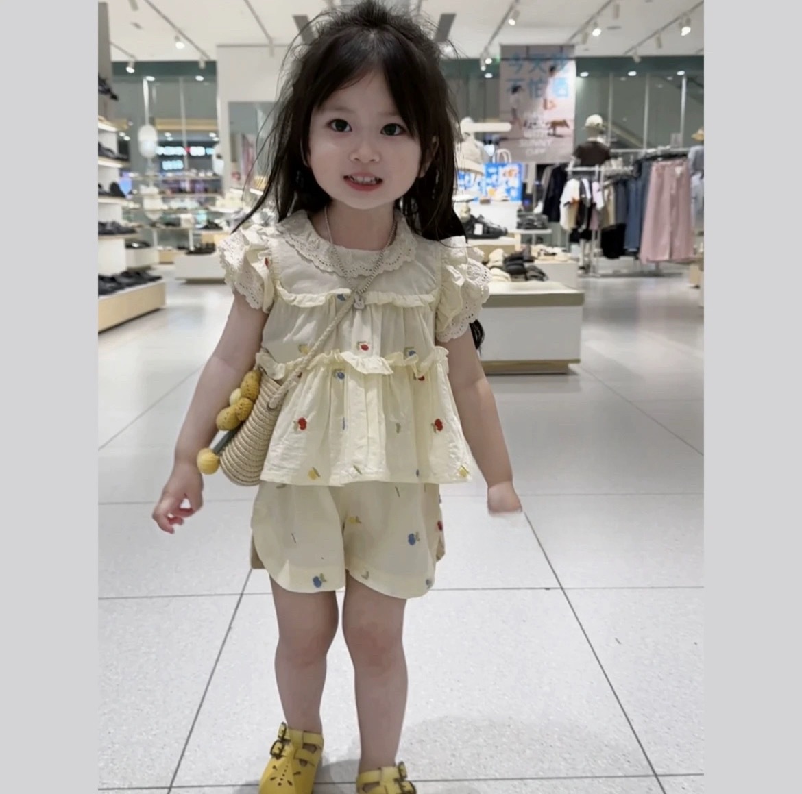 소녀 신선하고 달콤한 세트 여름 시즌 024 새로운 어린이 서양식 투피스 세트 아기 소녀 분할 반바지스토어 가기