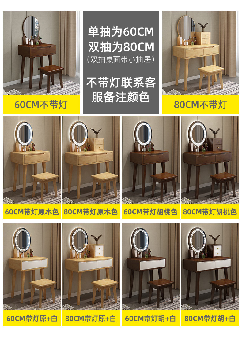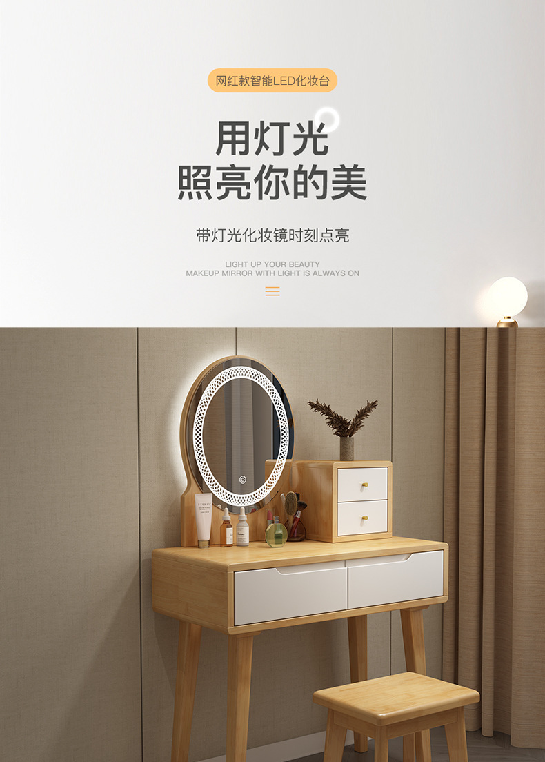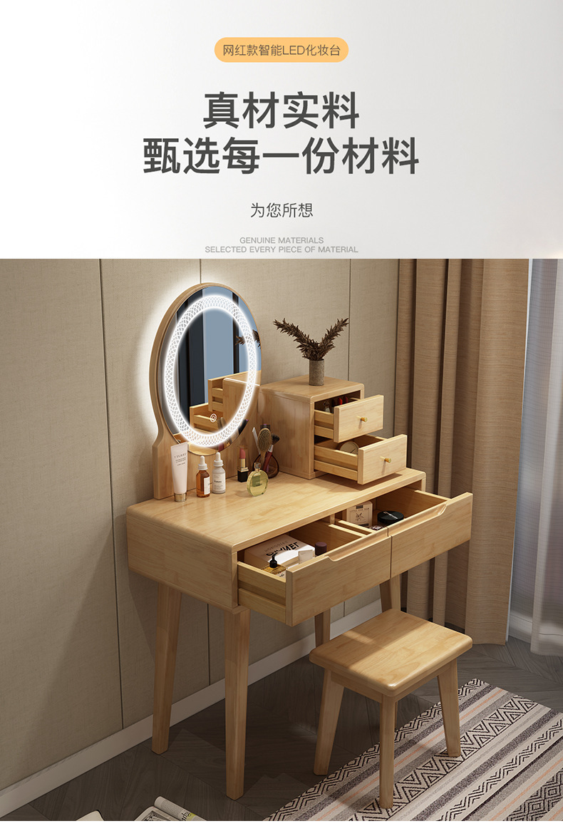 현대 간단한 북유럽 스타일 단단한 나무 드레싱 테이블 침실 저장 캐비닛 통합 인터넷 레드 스타일 미니 화장품 테이블스토어 가기