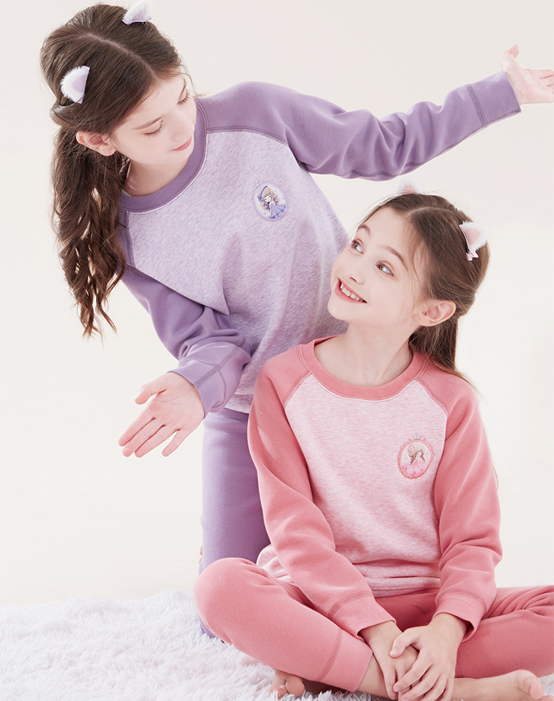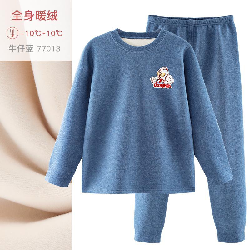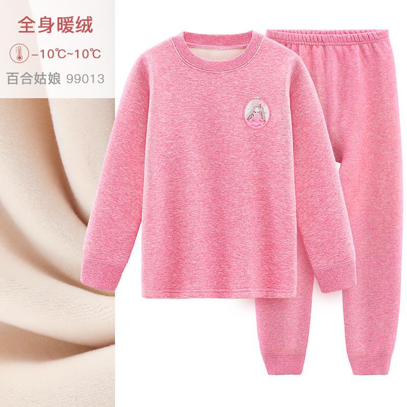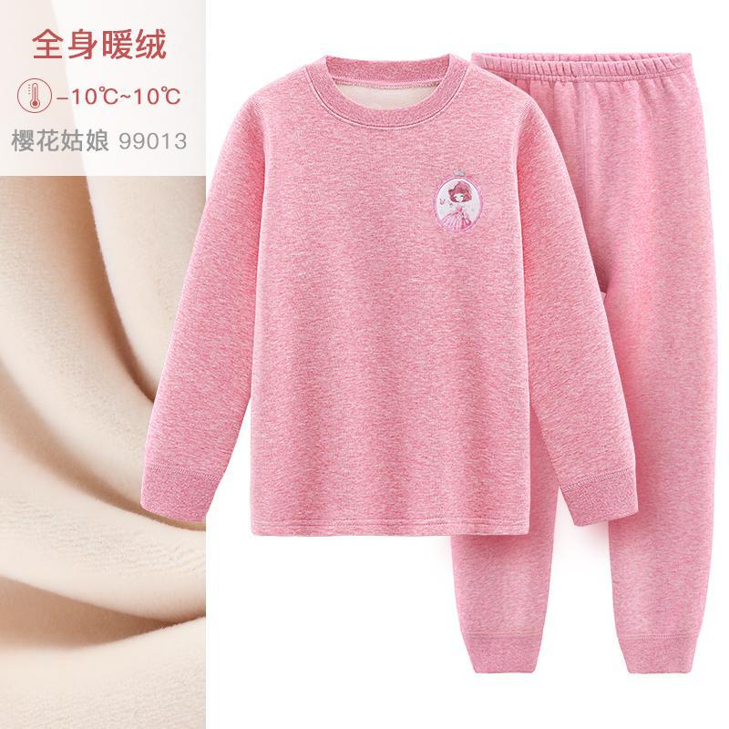 소녀의 열 속옷 세트 2024 가을/겨울 어린이 기모 두꺼운 아기의 가을 옷과 바지 소년 큰 어린이 잠옷