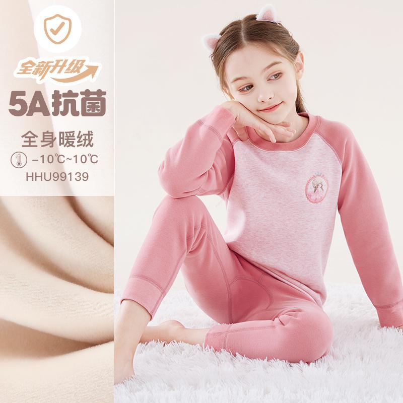 소녀의 열 속옷 세트 2024 가을/겨울 어린이 기모 두꺼운 아기의 가을 옷과 바지 소년 큰 어린이 잠옷스토어 가기